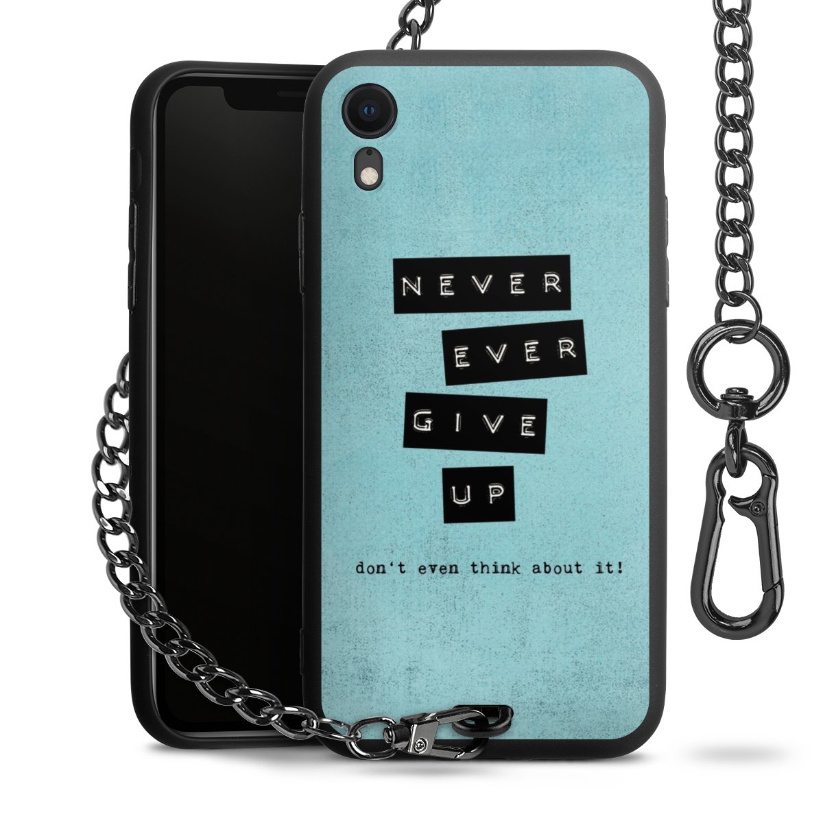 • Mattschwarze Handyhülle mit Metallkette