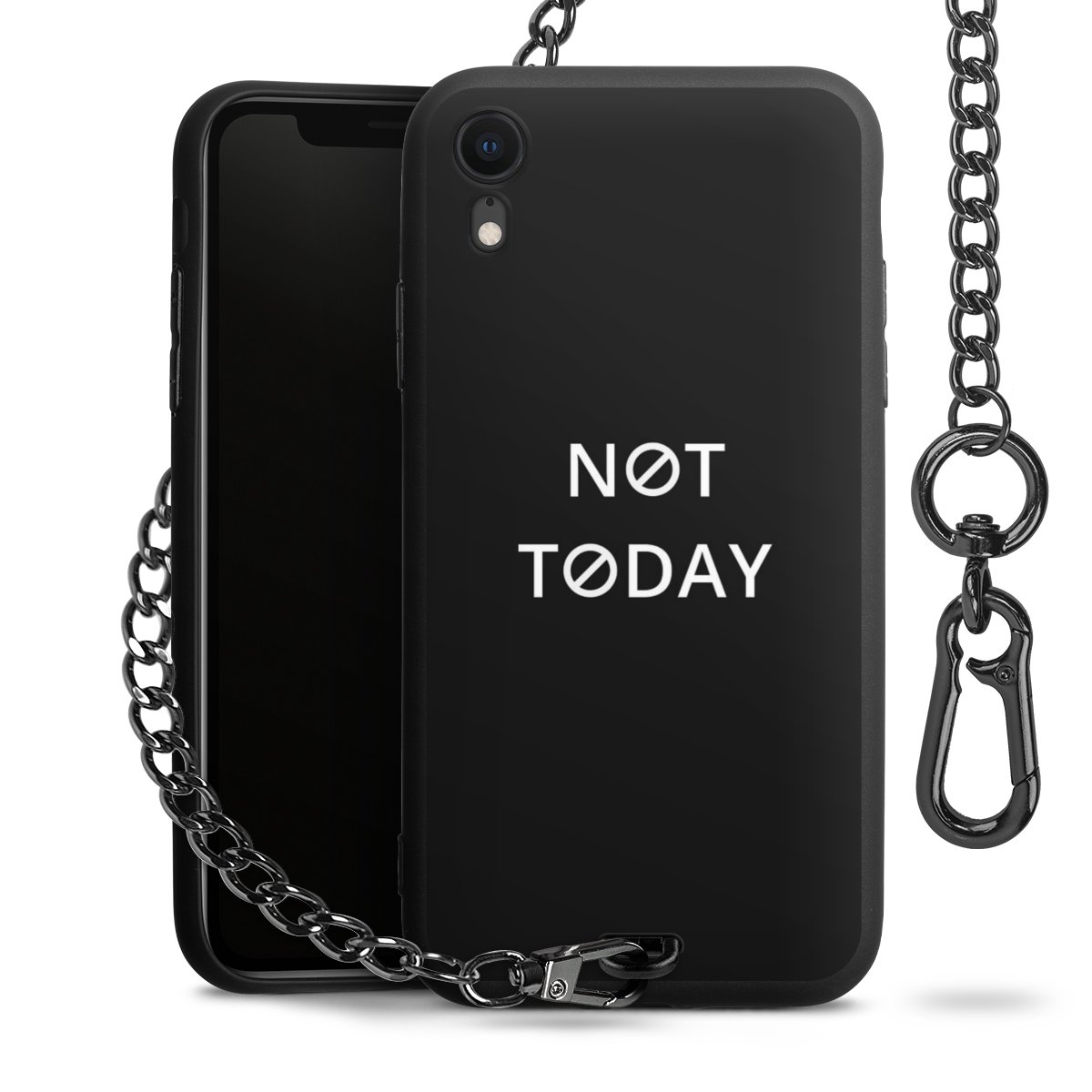 - Mattschwarze Handyhülle mit Metallkette
