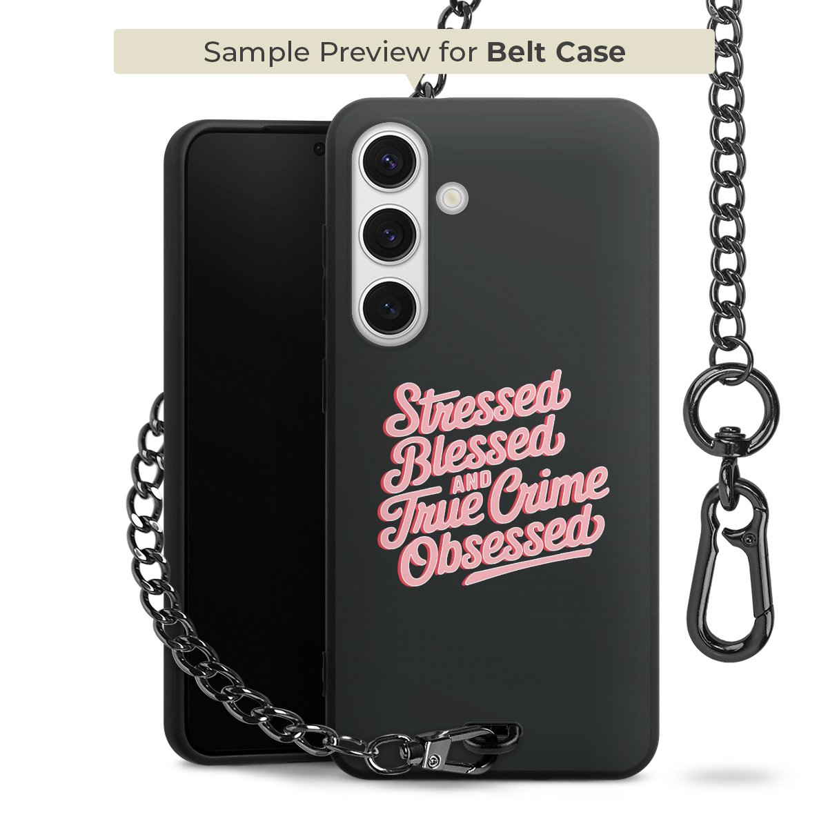 Ob im Alltag, beim Feiern mit Deinen Jungs oder auf Festivals – mit dem superpraktischen Belt Case steckst Du alle Sorgen um Diebstahl und Spider-App ganz entspannt in die Tasche. Es besteht aus einem coolen mattschwarzen Silikon Premium Case, dem Du ein individuelles Design verpassen kannst, und einer daran befestigten Kette in lässiger Gunmetal-Optik. Mit dem Karabiner auf der anderen Seite klickst Du die Kette mit einem Handgriff an Deine Gürtelschlaufe und schon ist Dein Smartphone sicher und stets griffbereit in der Hosentasche verstaut.