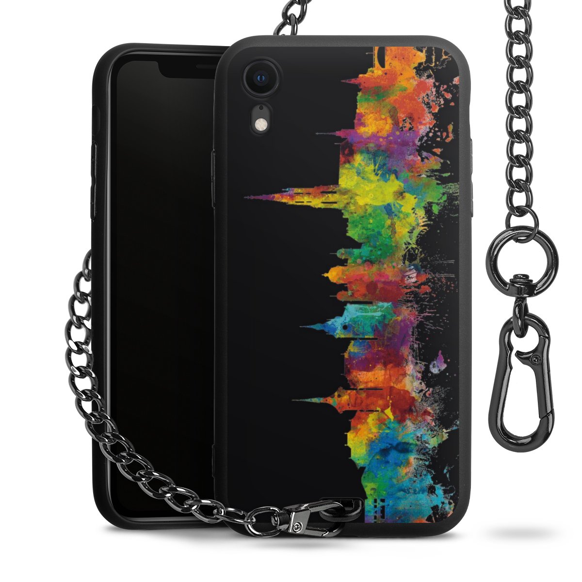 • Mattschwarze Handyhülle mit Metallkette