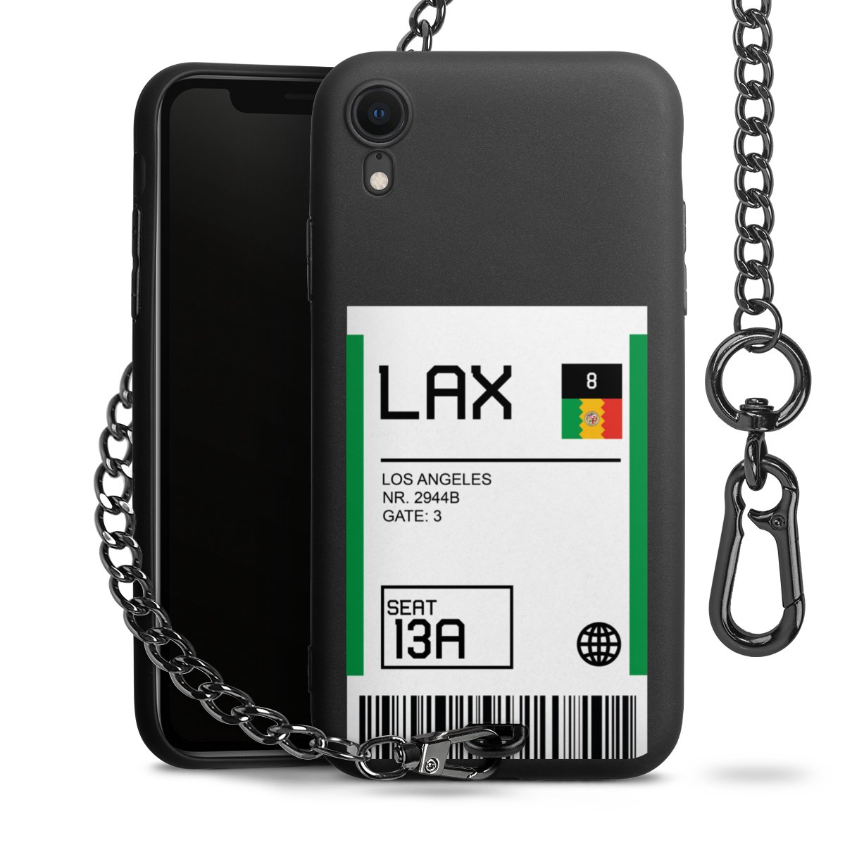 • Mattschwarze Handyhülle mit Metallkette