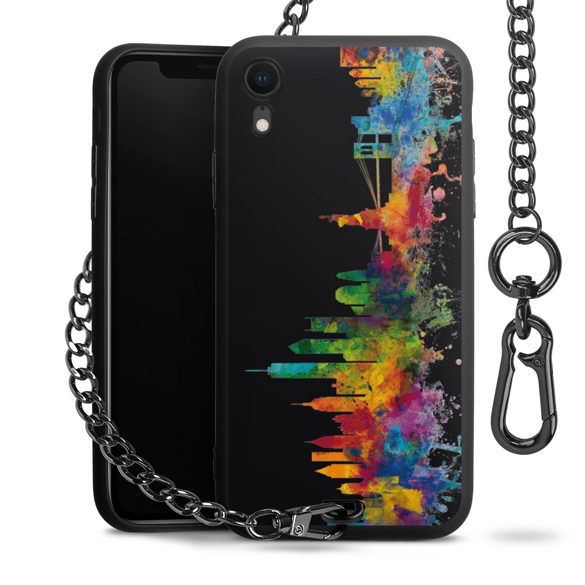 Die mattschwarze Silikon-Handyhülle besteht aus robustem TPU (thermoplastisches Polyurethan). Sie ist flexibel und schützt Dein Smartphone vor Stößen und Kratzern. Die Kette sowie der Karabinerhaken sind aus Metall in Gunmetal-Optik gefertigt. Für dieses Produkt kommen ausschließlich TÜV-geprüfte Materialien zum Einsatz.