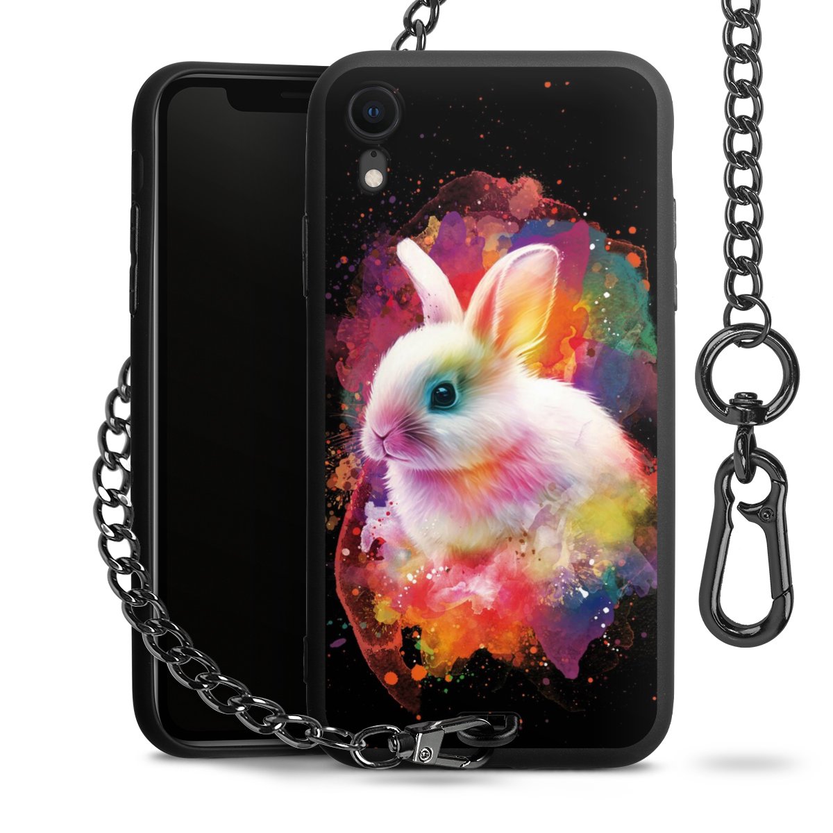• Mattschwarze Handyhülle mit Metallkette