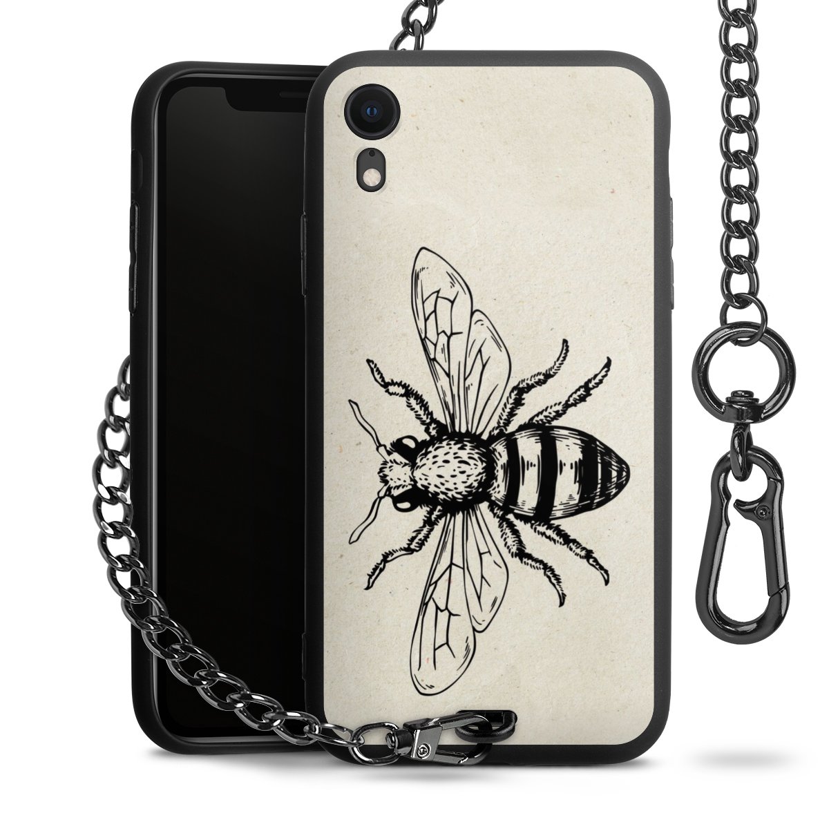 • Mattschwarze Handyhülle mit Metallkette