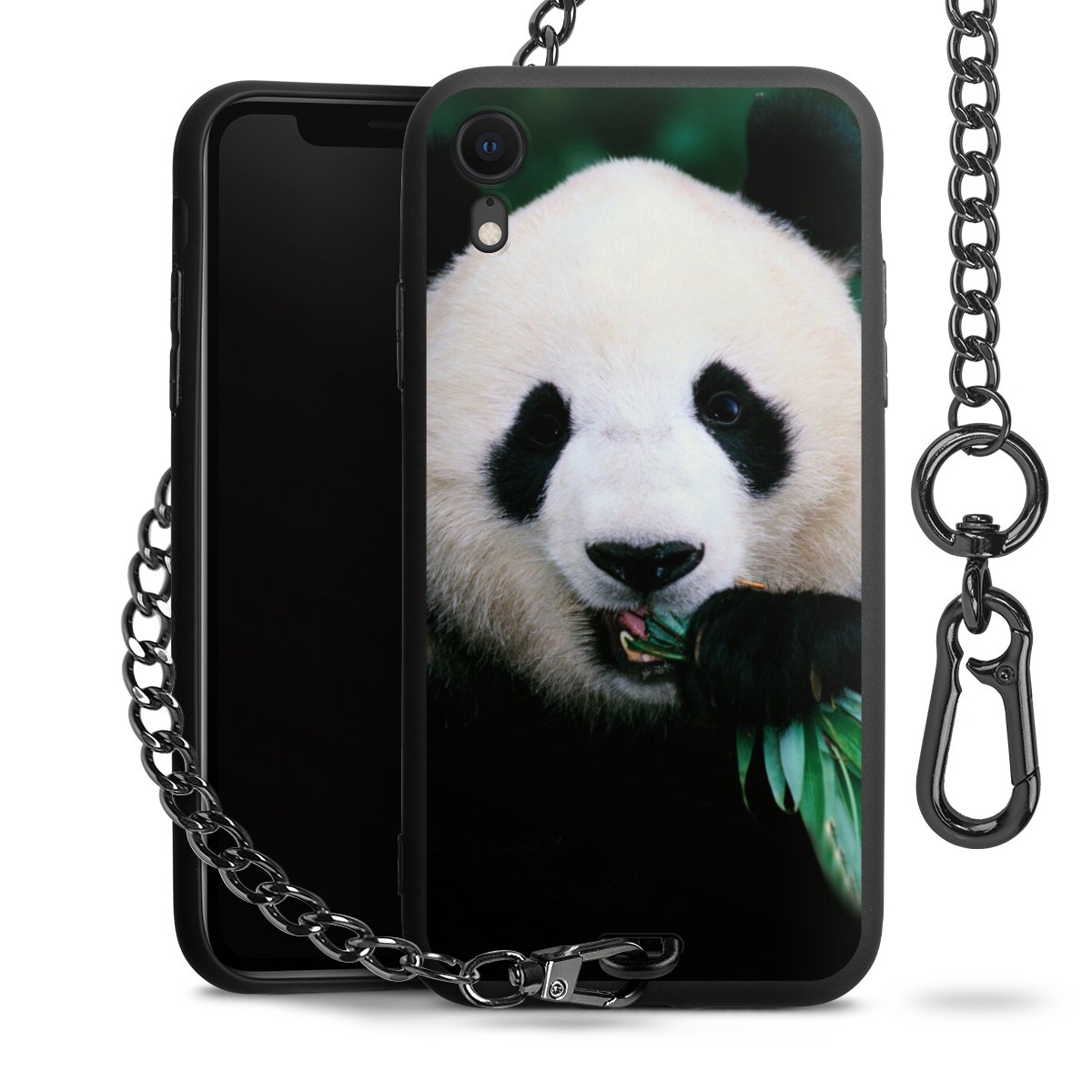 - Mattschwarze Handyhülle mit Metallkette