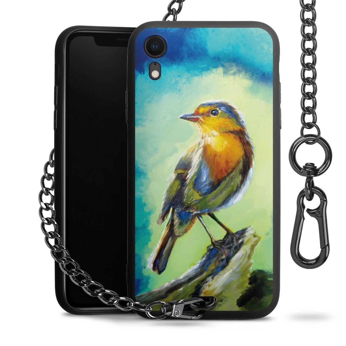 • Mattschwarze Handyhülle mit Metallkette