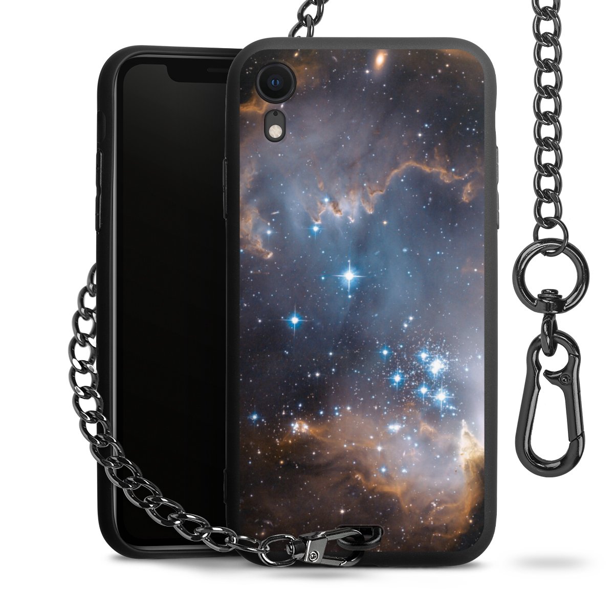 - Mattschwarze Handyhülle mit Metallkette