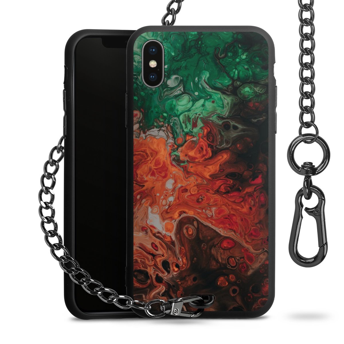 - Mattschwarze Handyhülle mit Metallkette