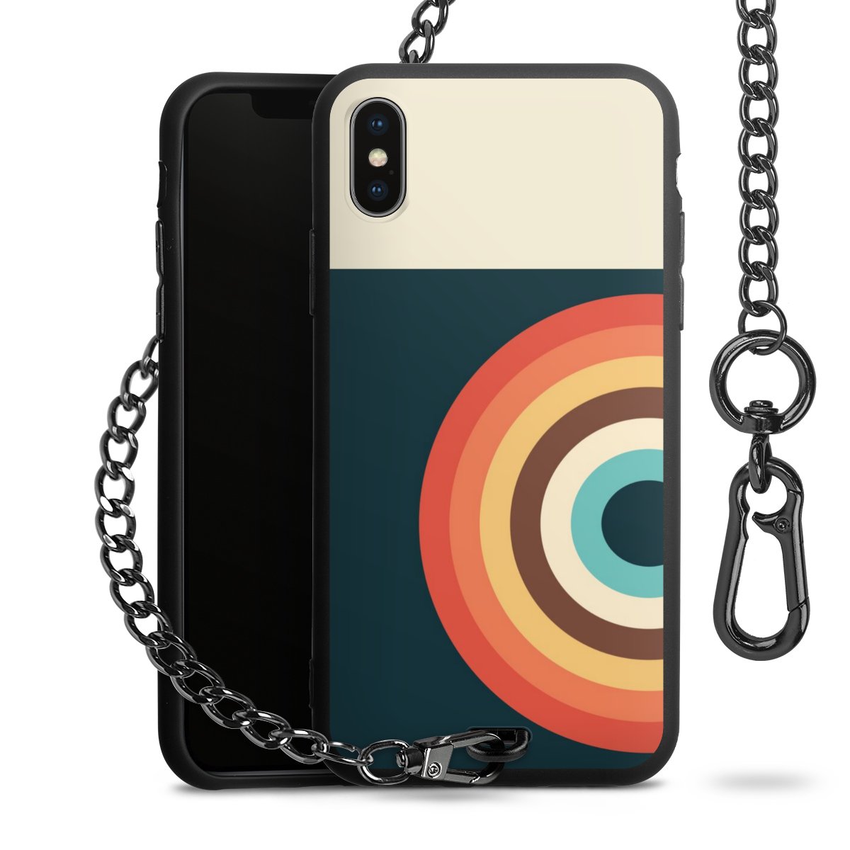 - Mattschwarze Handyhülle mit Metallkette
