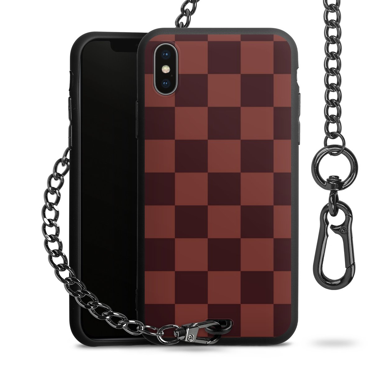 - Mattschwarze Handyhülle mit Metallkette