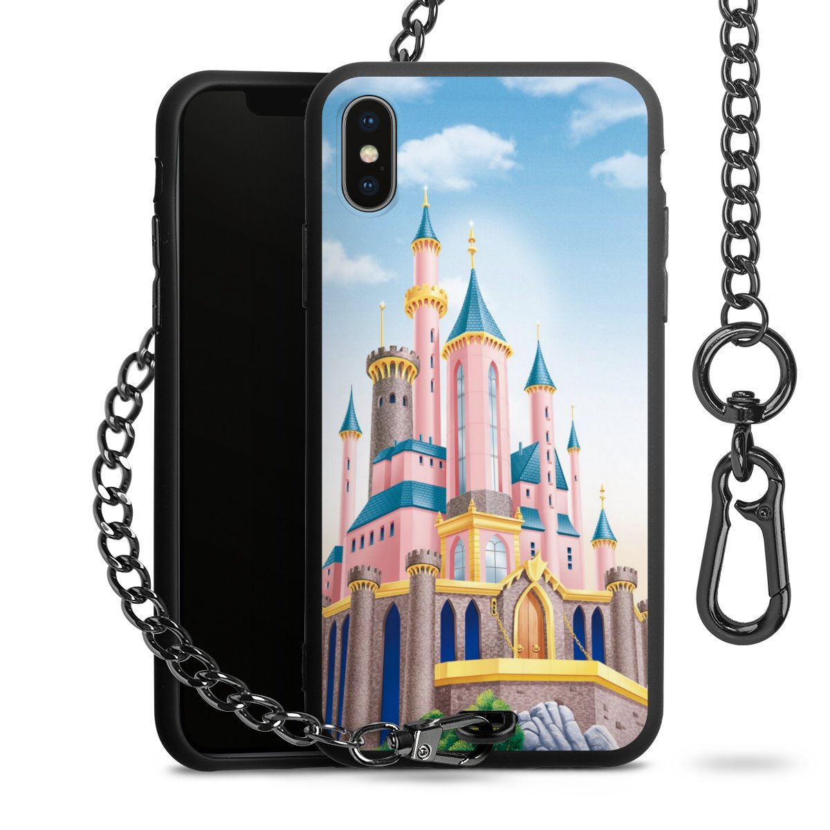 • Mattschwarze Handyhülle mit Metallkette