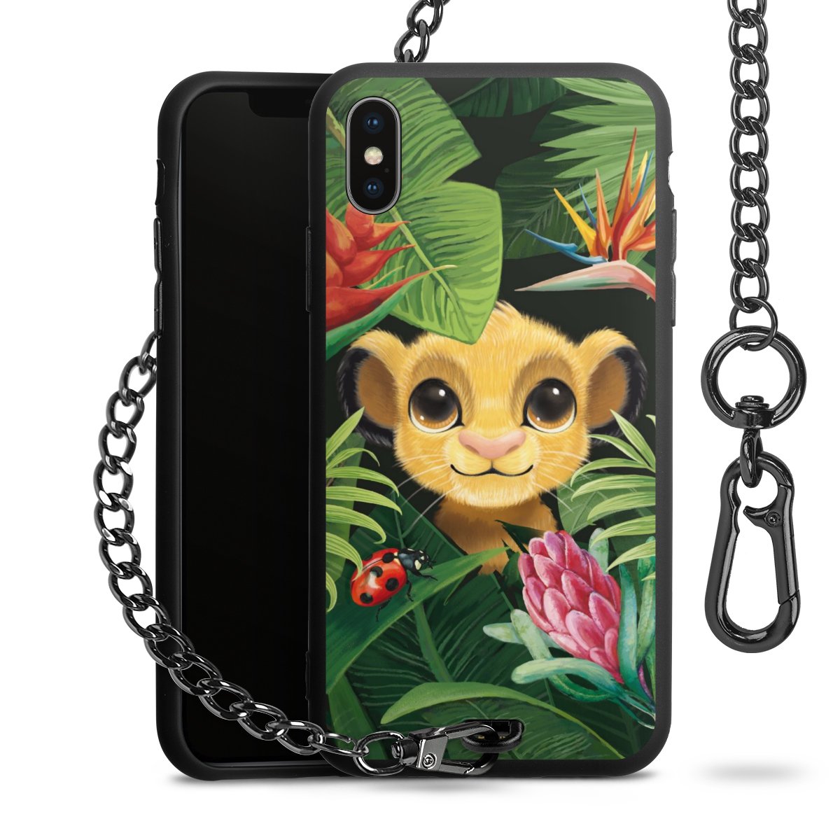 Die Handyhülle verfügt über eine mittig am unteren Rand platzierte Öse, an der die Metallkette stabil befestigt ist. Bestelle die Hülle einfach für Dein Smartphone-Modell, dann passt sie wie angegossen und Du brauchst sie bloß einmal anzudrücken. Handy in die Tasche, Karabiner an den Hosenbund – schon kann die Party starten.