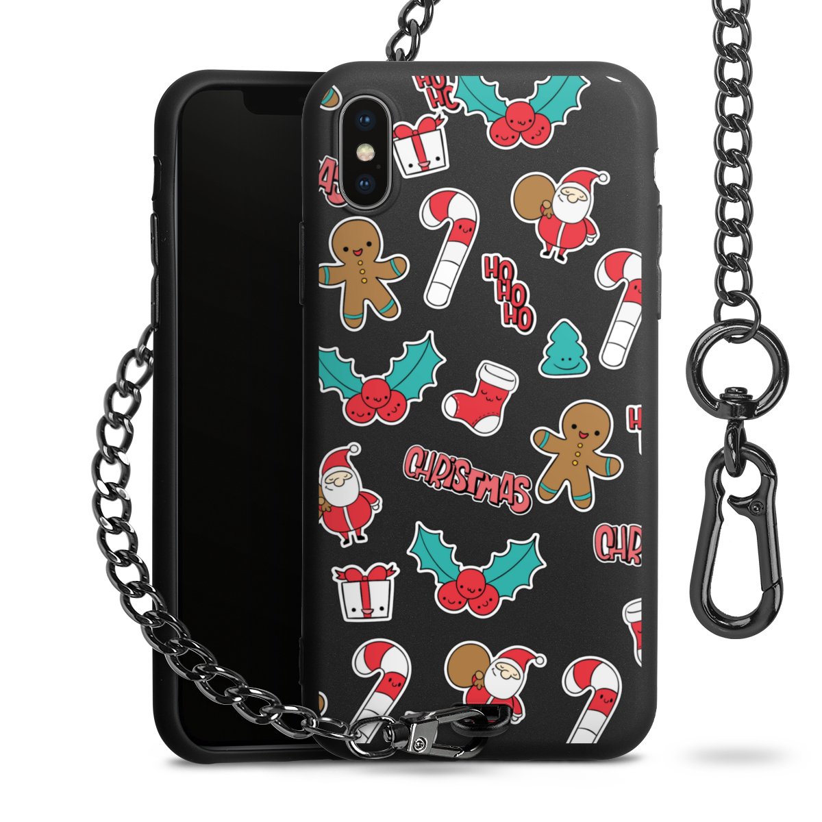 - Mattschwarze Handyhülle mit Metallkette