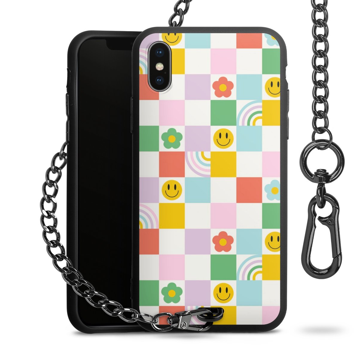 Die mattschwarze Silikon-Handyhülle besteht aus robustem TPU (thermoplastisches Polyurethan). Sie ist flexibel und schützt Dein Smartphone vor Stößen und Kratzern. Die Kette sowie der Karabinerhaken sind aus Metall in Gunmetal-Optik gefertigt. Für dieses Produkt kommen ausschließlich TÜV-geprüfte Materialien zum Einsatz.