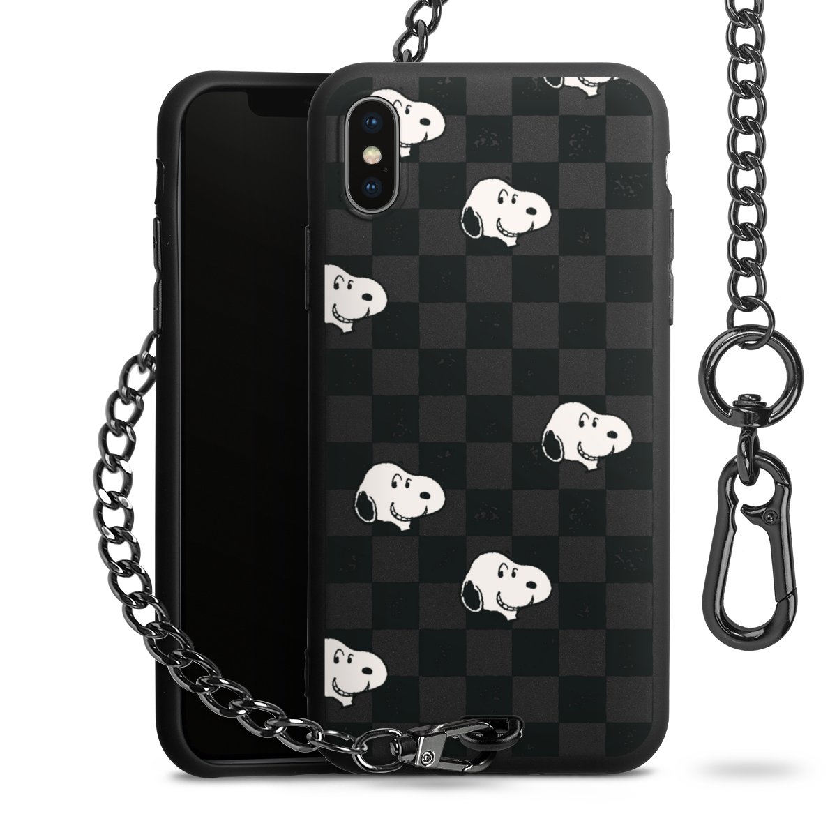 Die mattschwarze Silikon-Handyhülle besteht aus robustem TPU (thermoplastisches Polyurethan). Sie ist flexibel und schützt Dein Smartphone vor Stößen und Kratzern. Die Kette sowie der Karabinerhaken sind aus Metall in Gunmetal-Optik gefertigt. Für dieses Produkt kommen ausschließlich TÜV-geprüfte Materialien zum Einsatz.