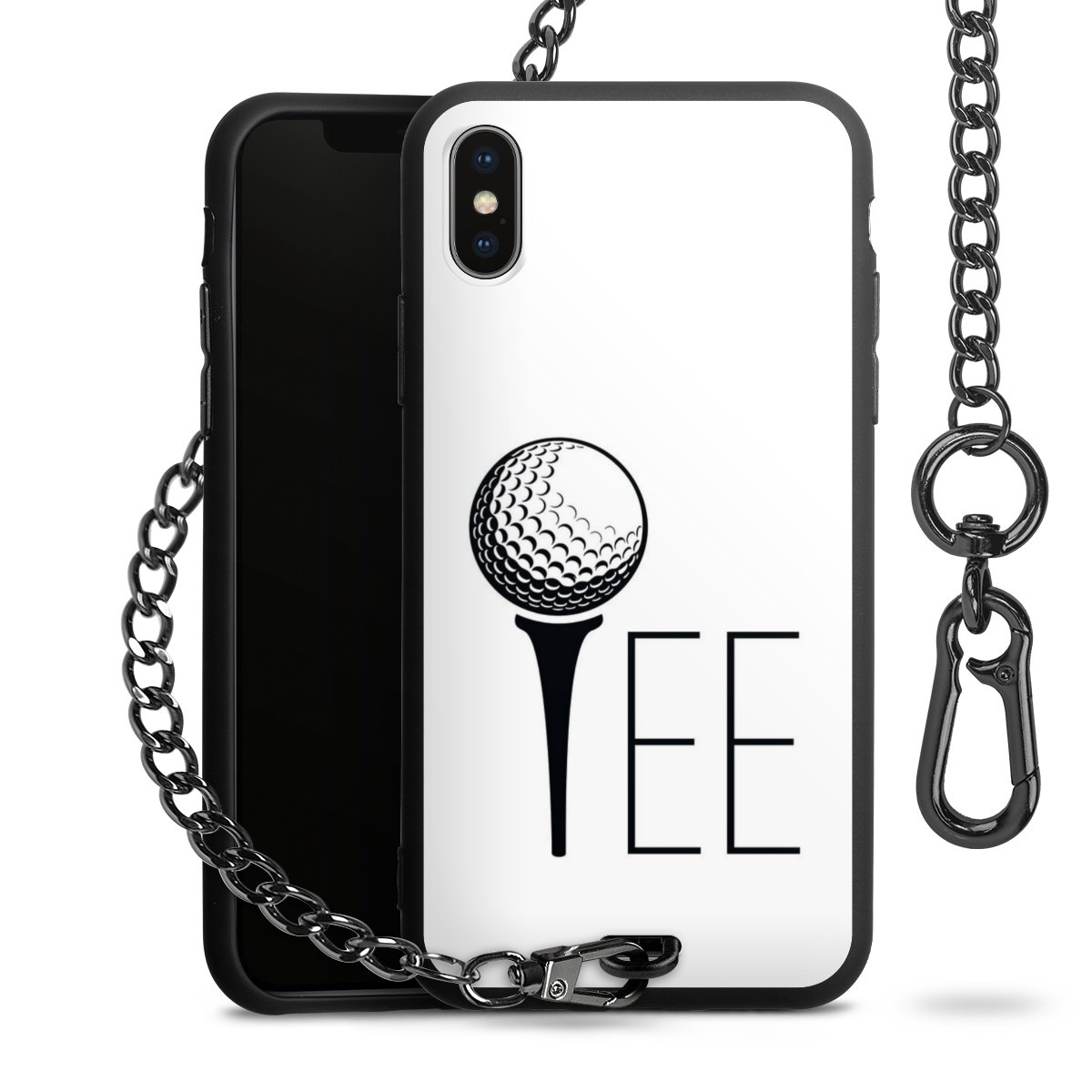 • Mattschwarze Handyhülle mit Metallkette