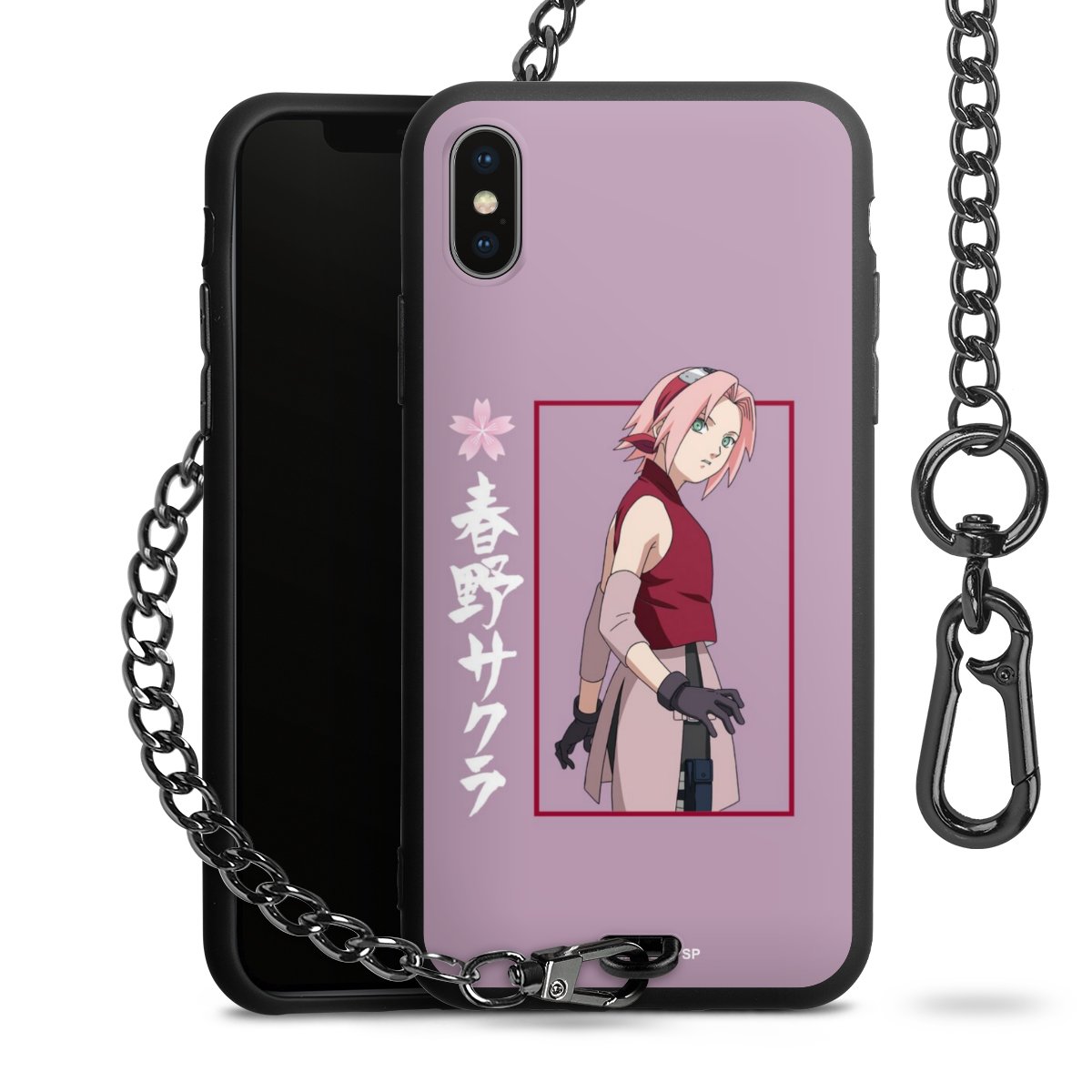 • Mattschwarze Handyhülle mit Metallkette