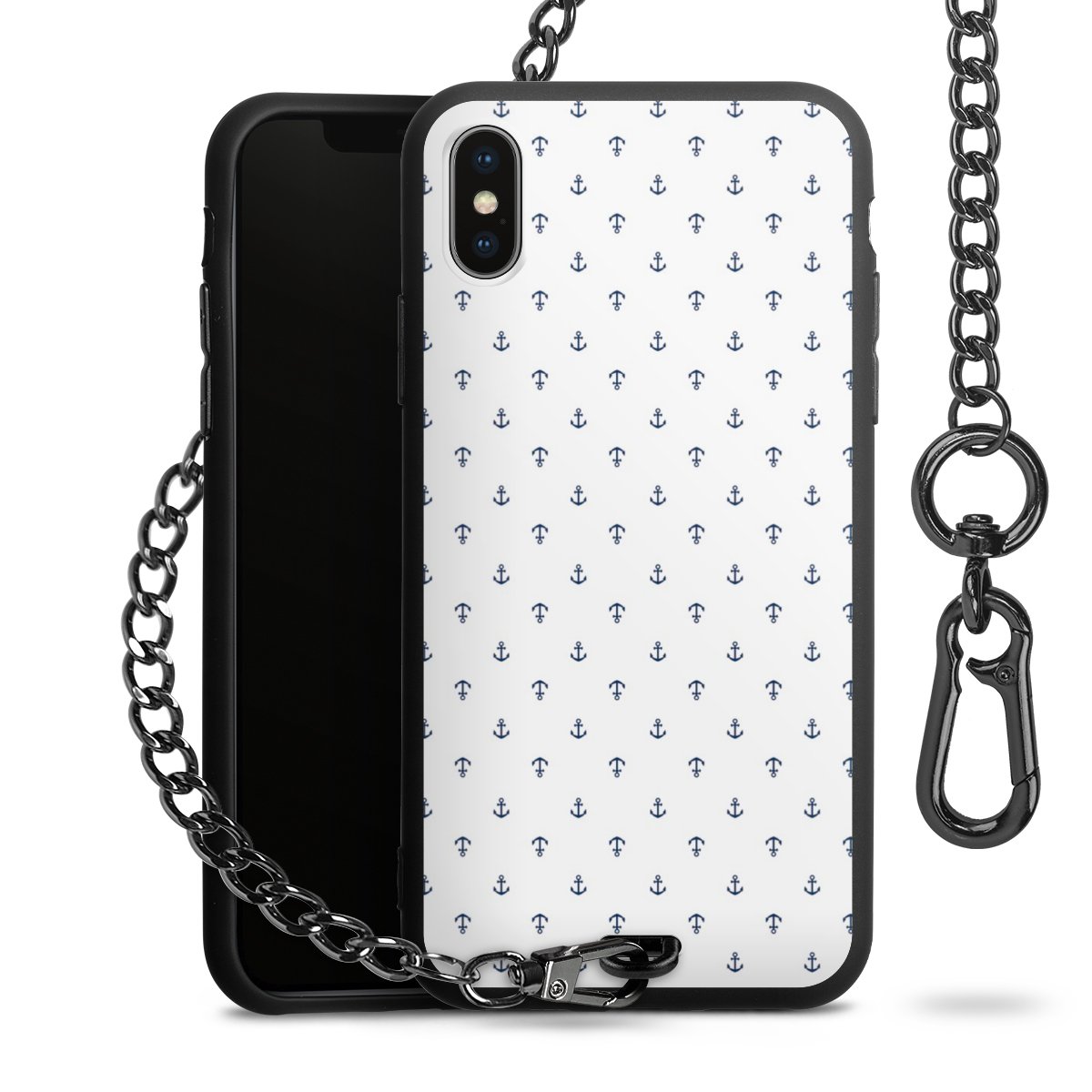 - Mattschwarze Handyhülle mit Metallkette