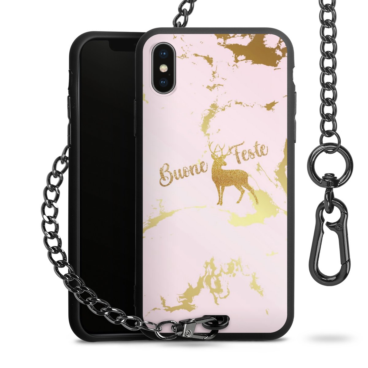 - Mattschwarze Handyhülle mit Metallkette