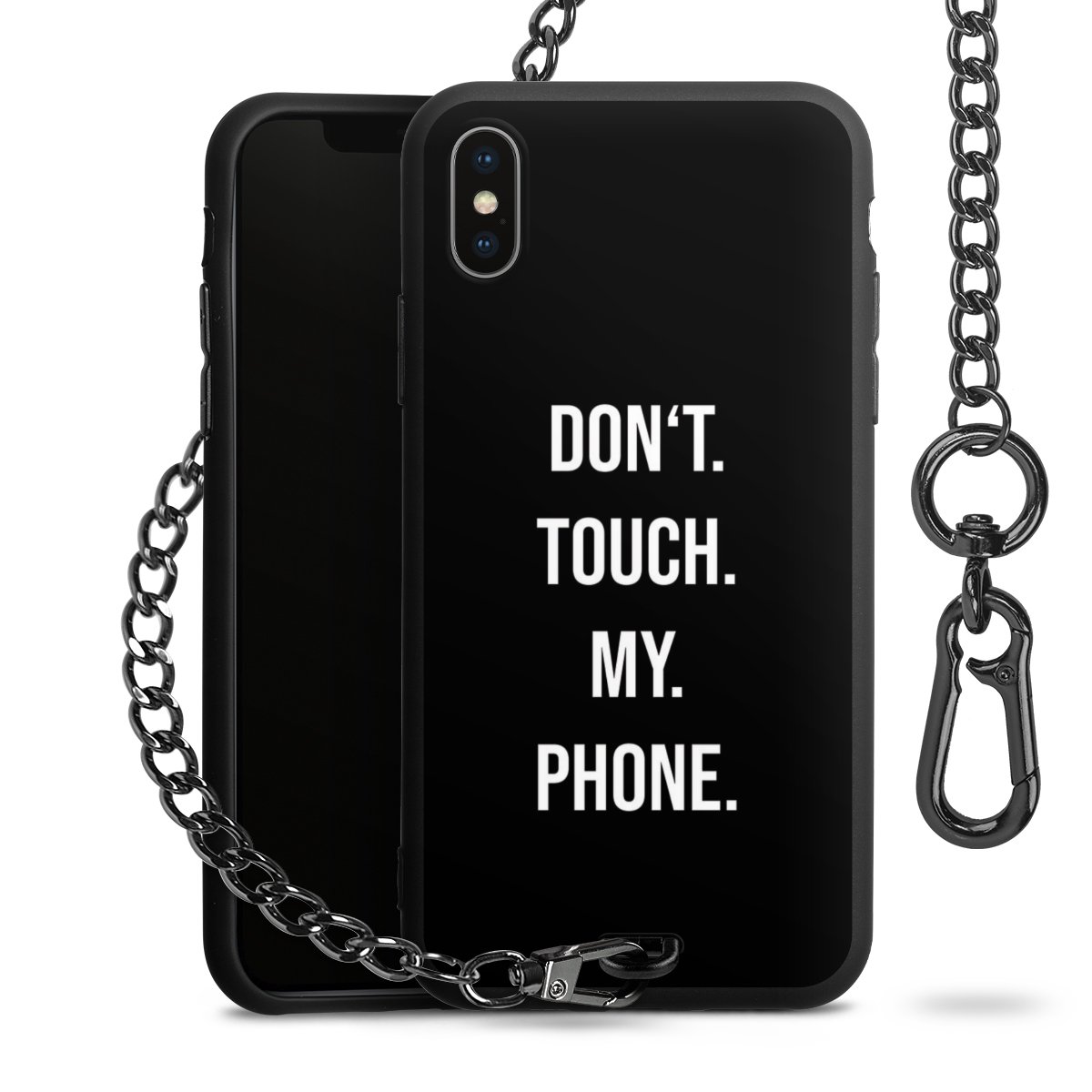 • Mattschwarze Handyhülle mit Metallkette