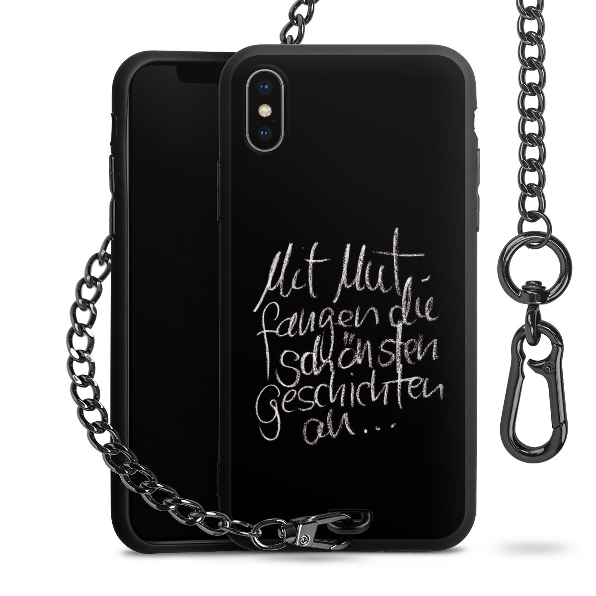 • Mattschwarze Handyhülle mit Metallkette