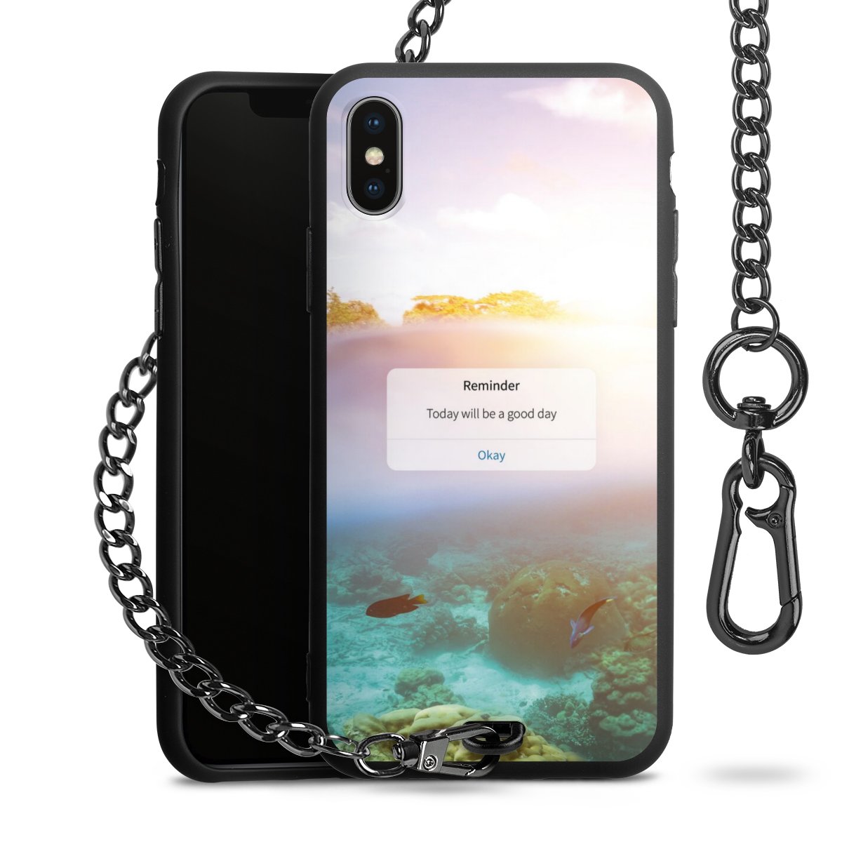 • Mattschwarze Handyhülle mit Metallkette