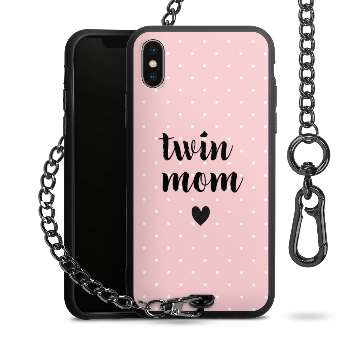 • Mattschwarze Handyhülle mit Metallkette