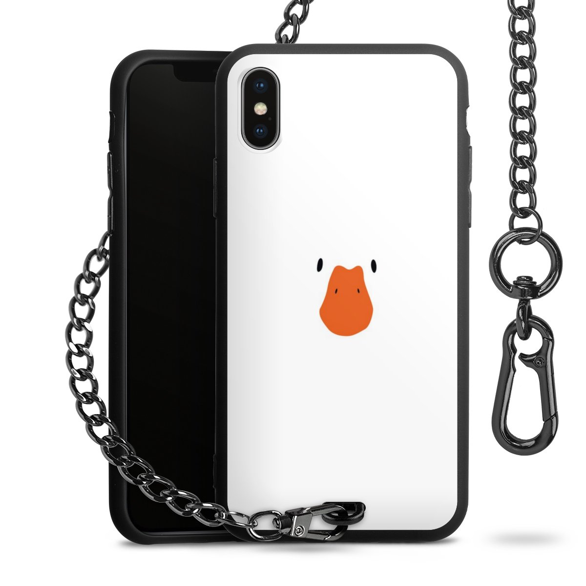 - Mattschwarze Handyhülle mit Metallkette