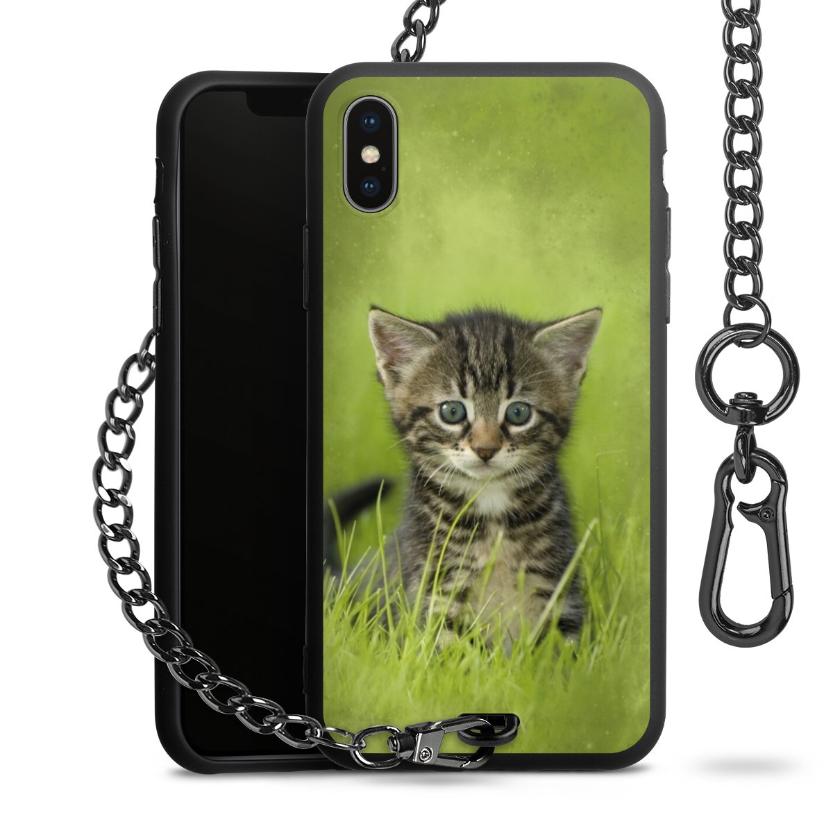 - Mattschwarze Handyhülle mit Metallkette