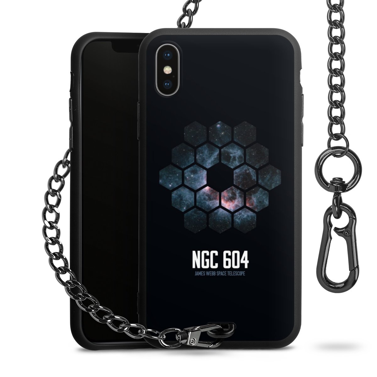 - Mattschwarze Handyhülle mit Metallkette