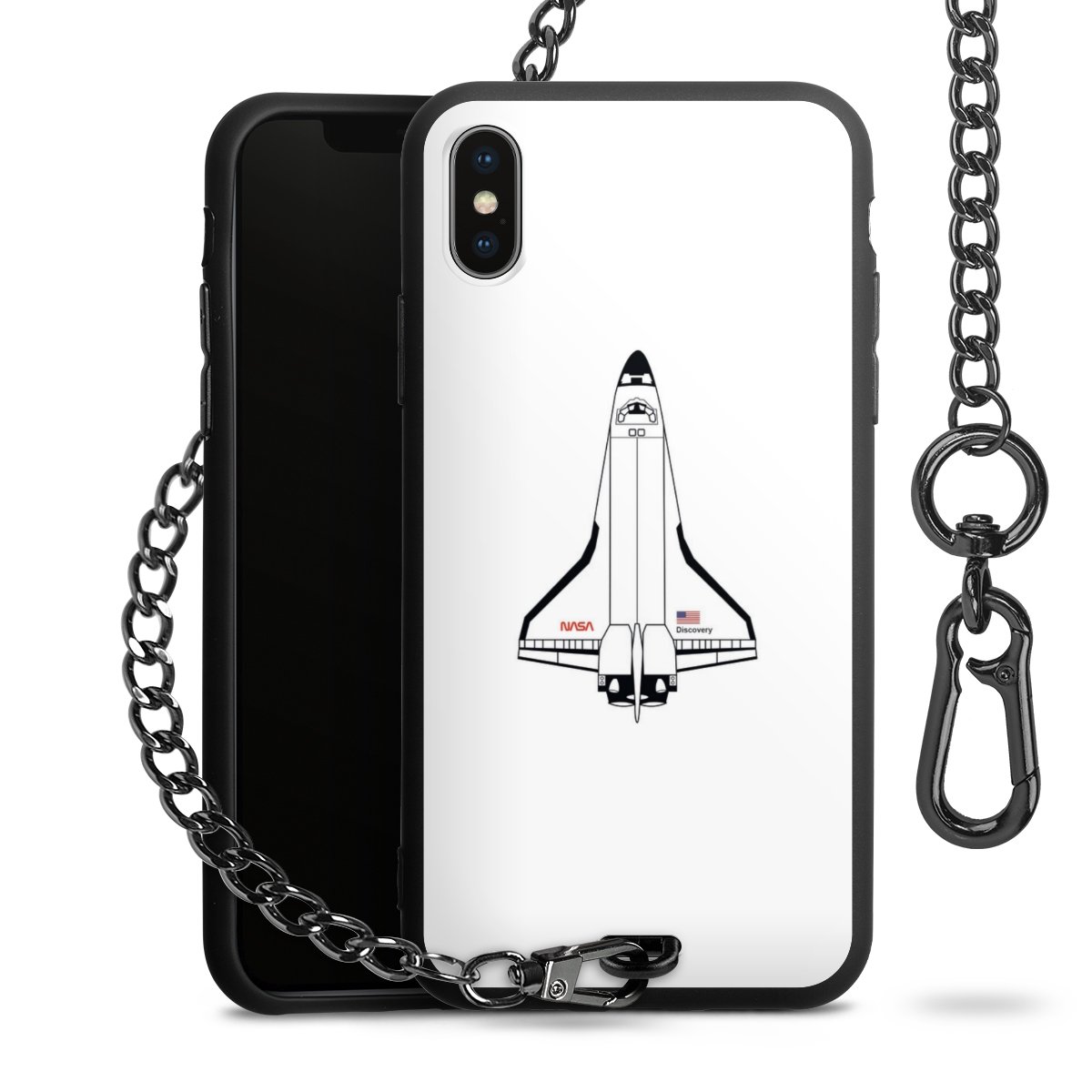 - Mattschwarze Handyhülle mit Metallkette