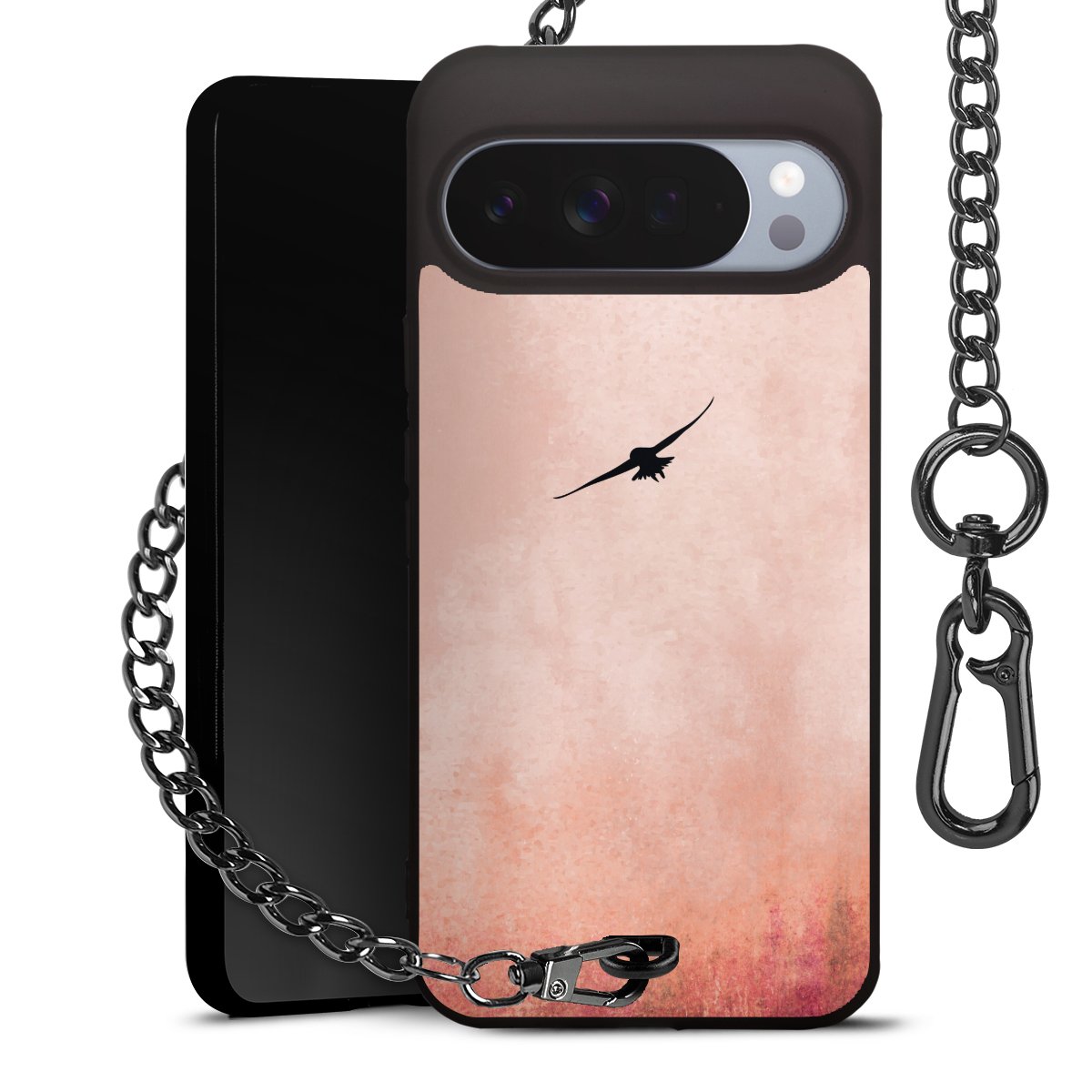 • Mattschwarze Handyhülle mit Metallkette