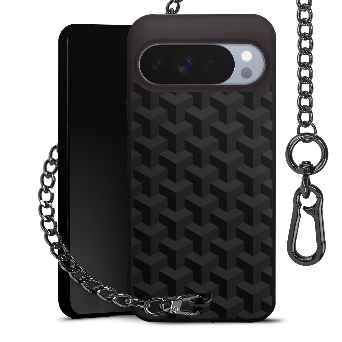 • Mattschwarze Handyhülle mit Metallkette