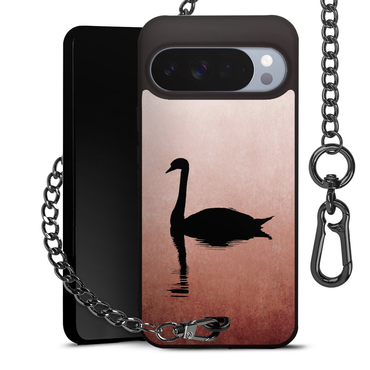 • Mattschwarze Handyhülle mit Metallkette