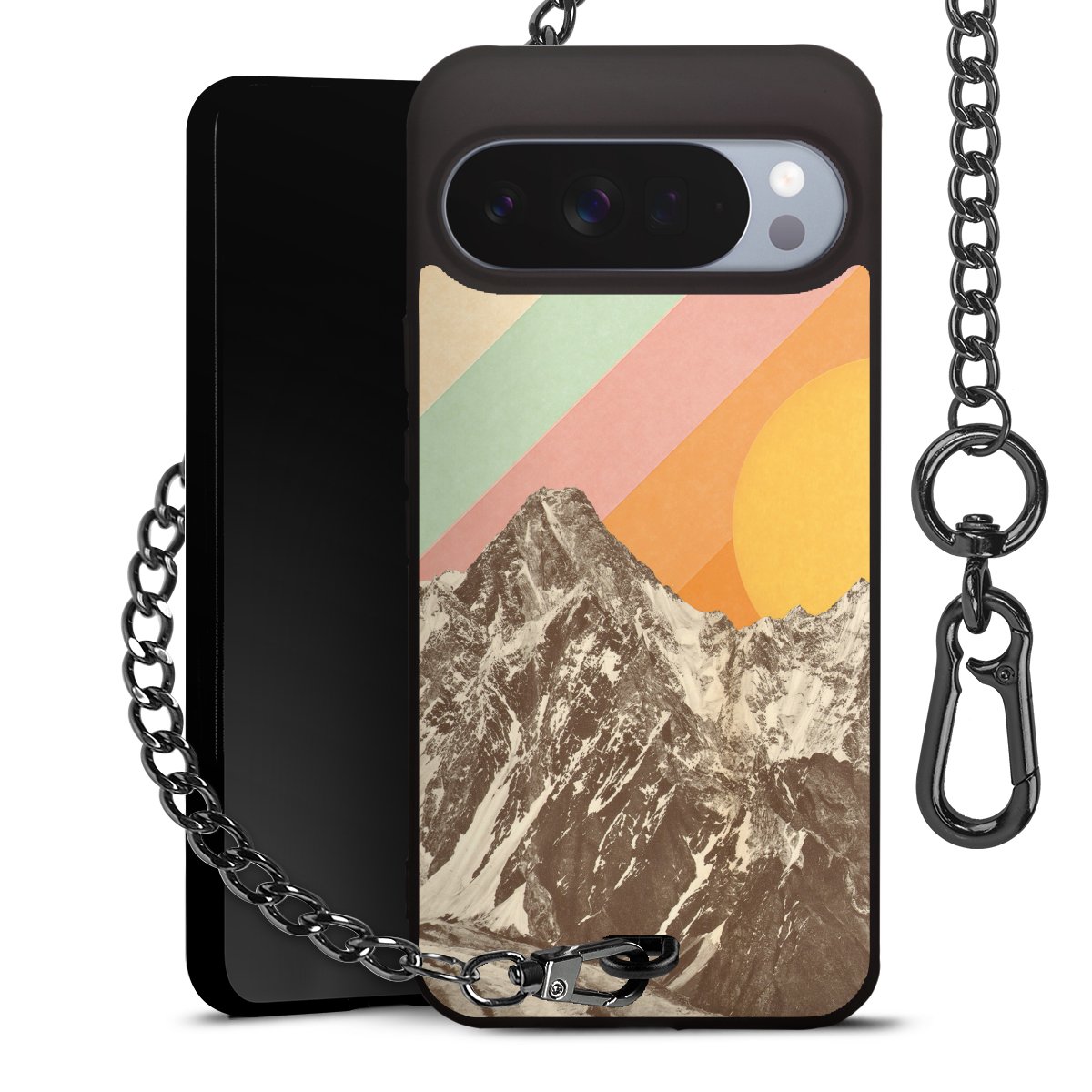 • Mattschwarze Handyhülle mit Metallkette