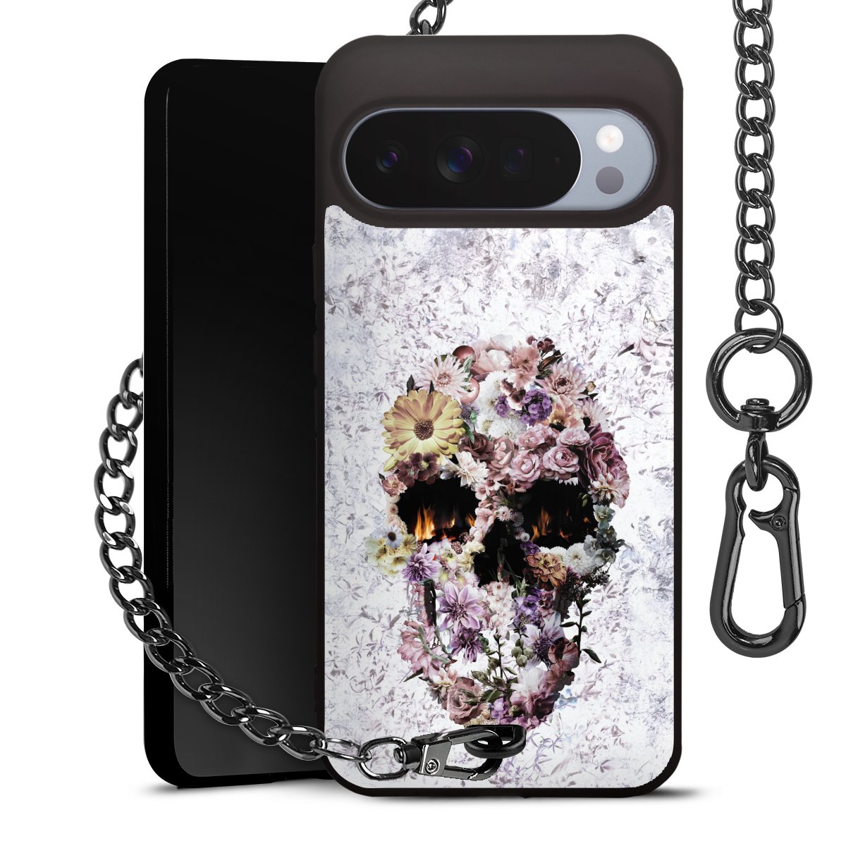 • Mattschwarze Handyhülle mit Metallkette