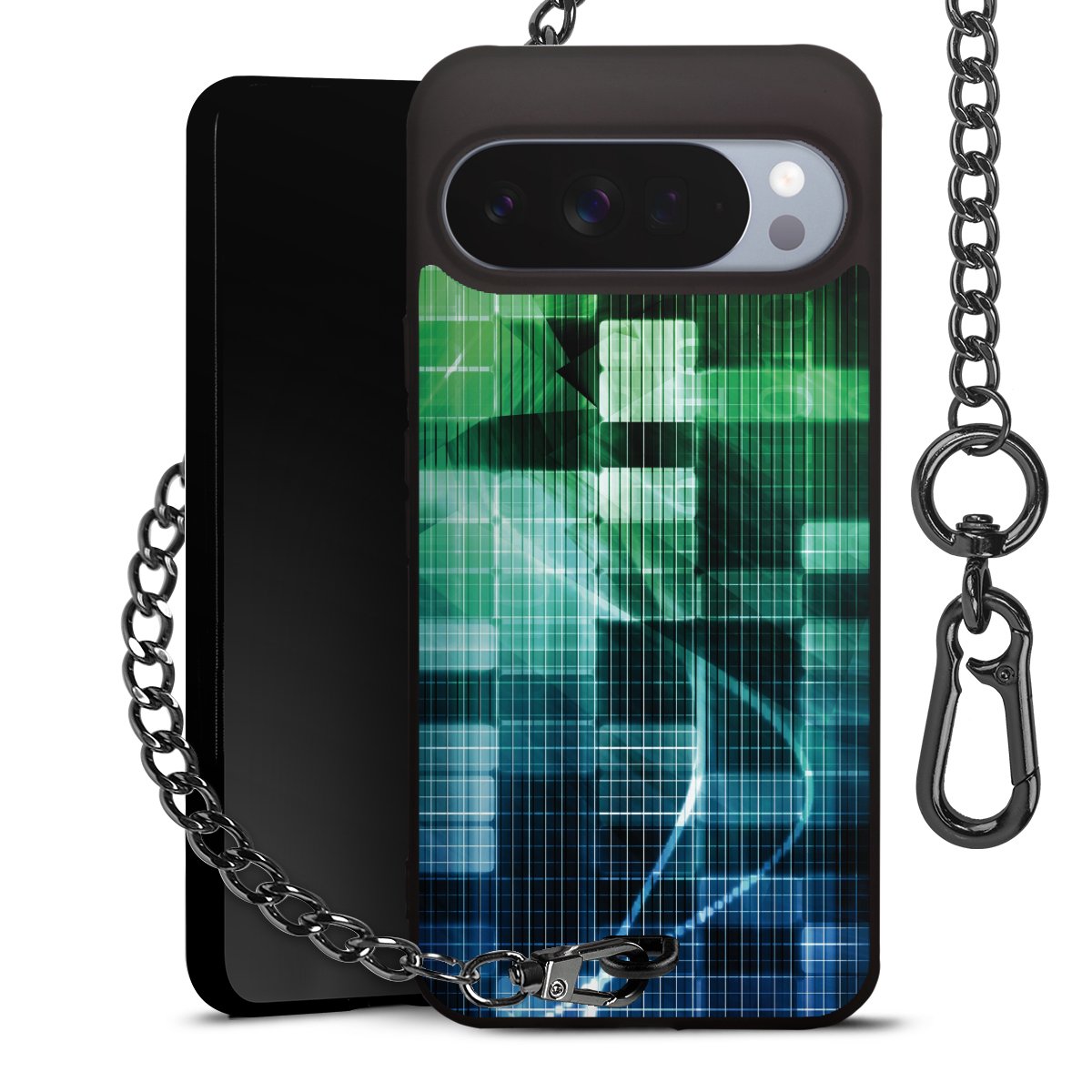 - Mattschwarze Handyhülle mit Metallkette