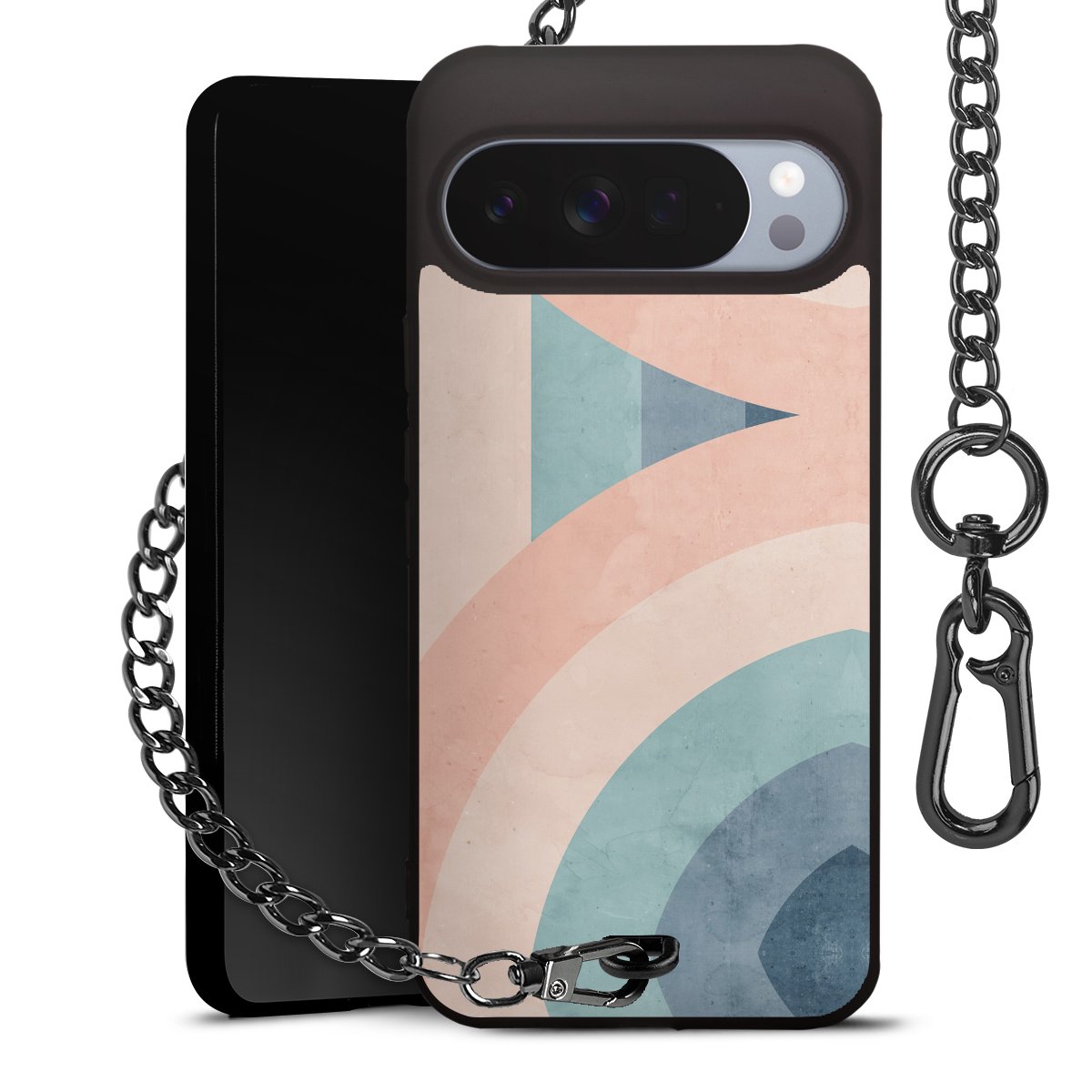 • Mattschwarze Handyhülle mit Metallkette