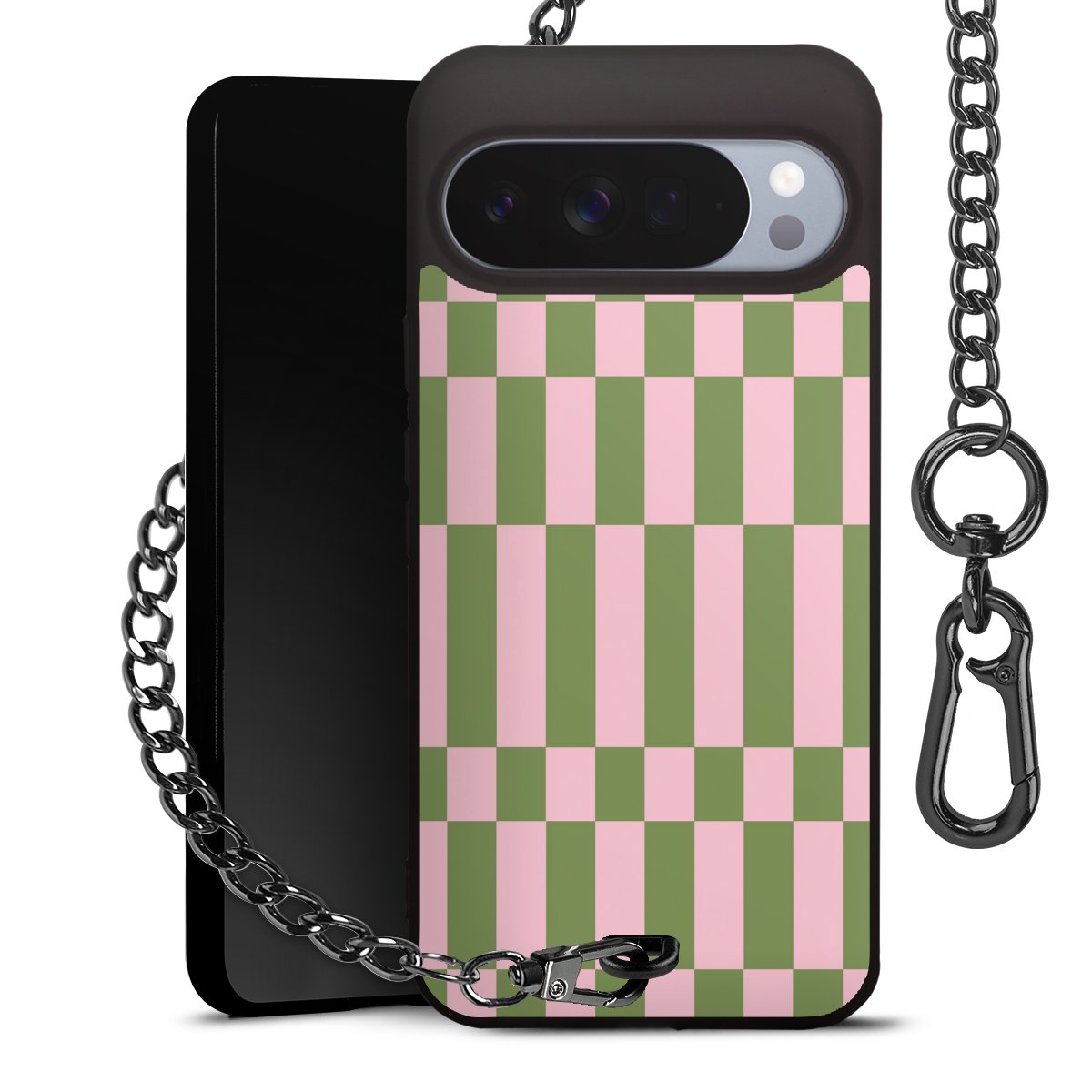 • Mattschwarze Handyhülle mit Metallkette