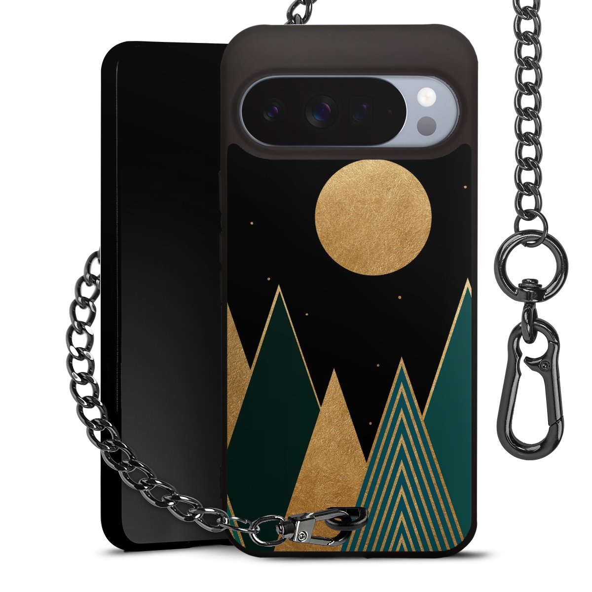 • Mattschwarze Handyhülle mit Metallkette