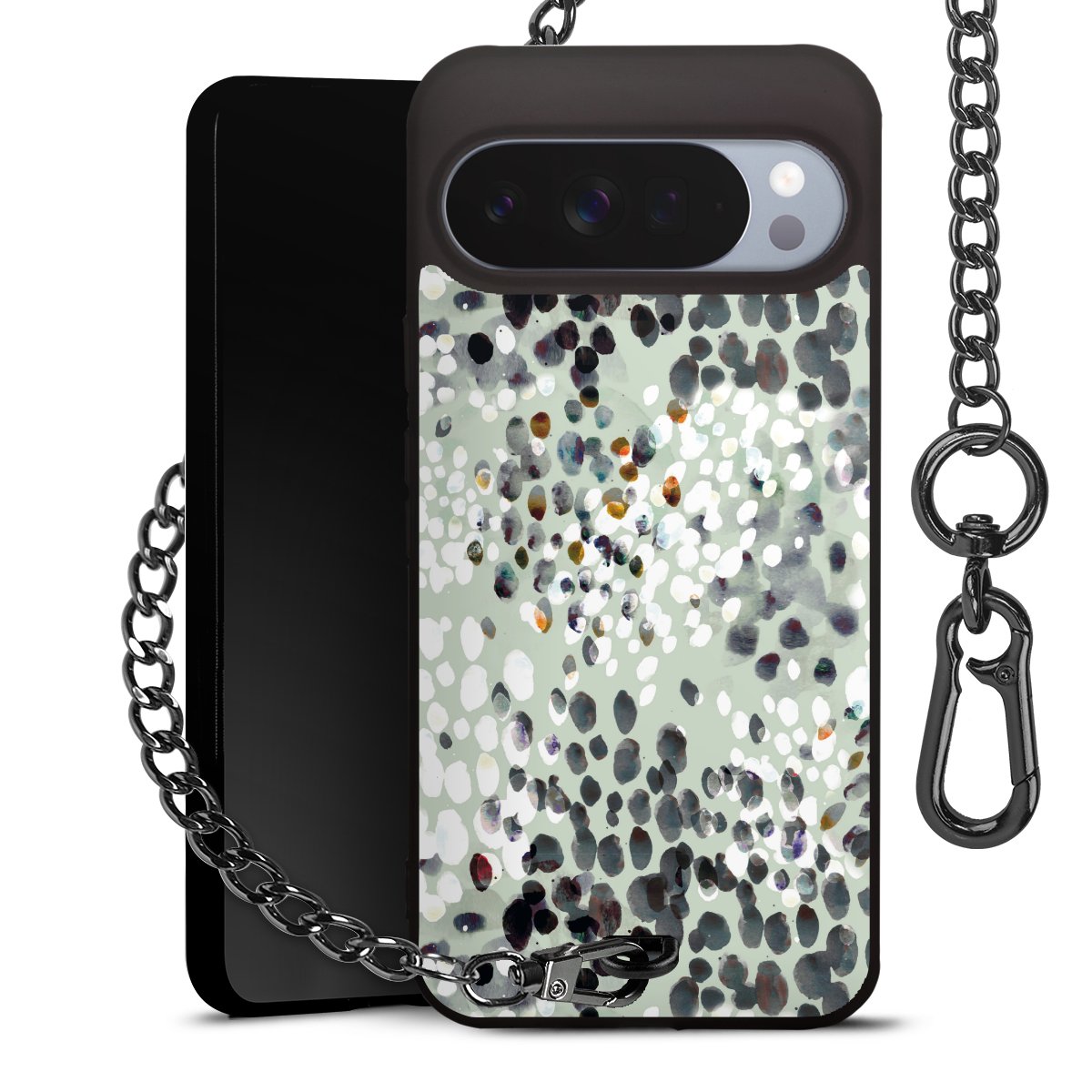 • Mattschwarze Handyhülle mit Metallkette