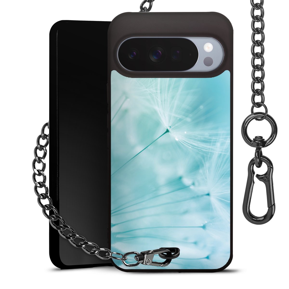 - Mattschwarze Handyhülle mit Metallkette