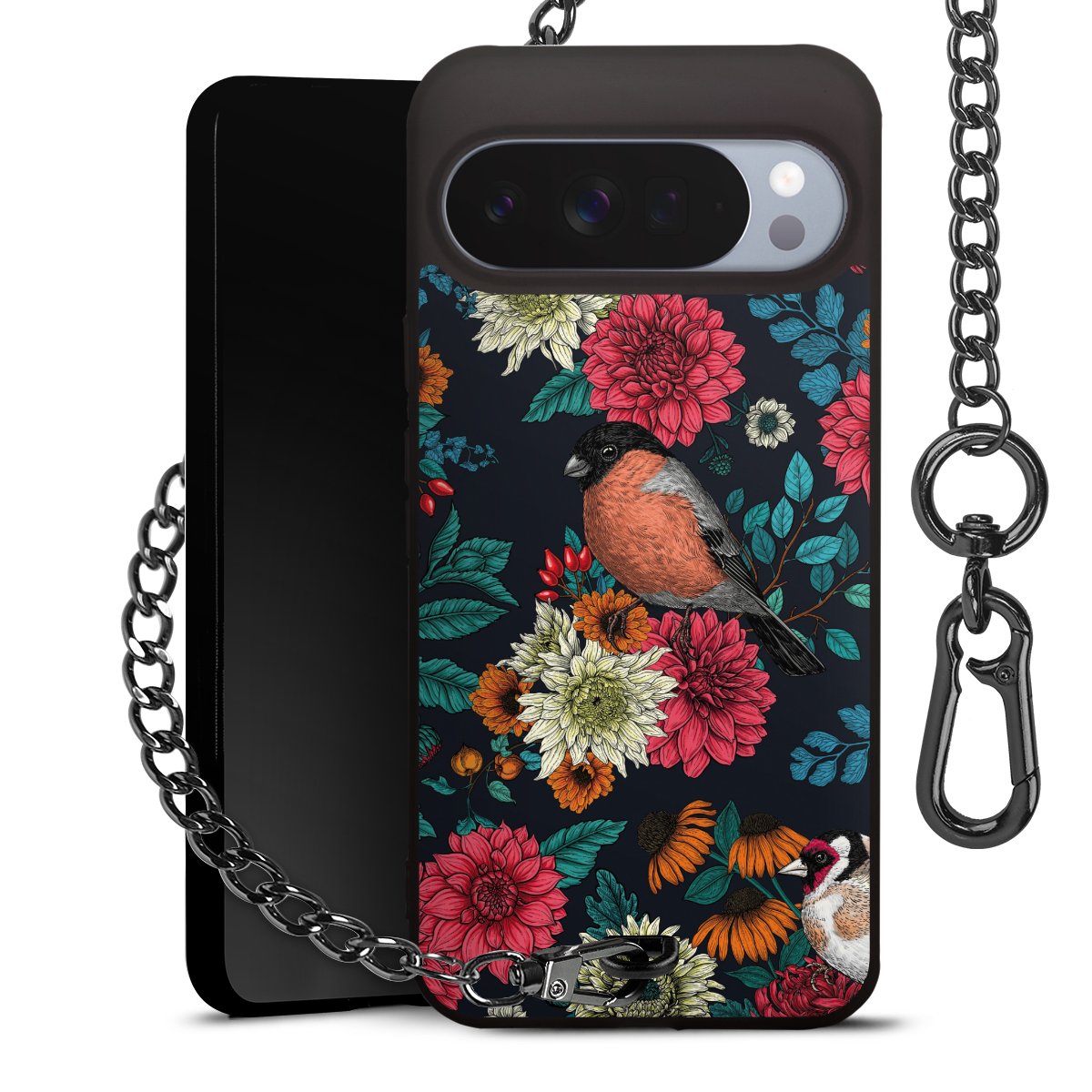 • Mattschwarze Handyhülle mit Metallkette