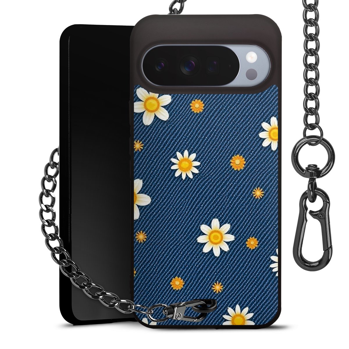 - Mattschwarze Handyhülle mit Metallkette
