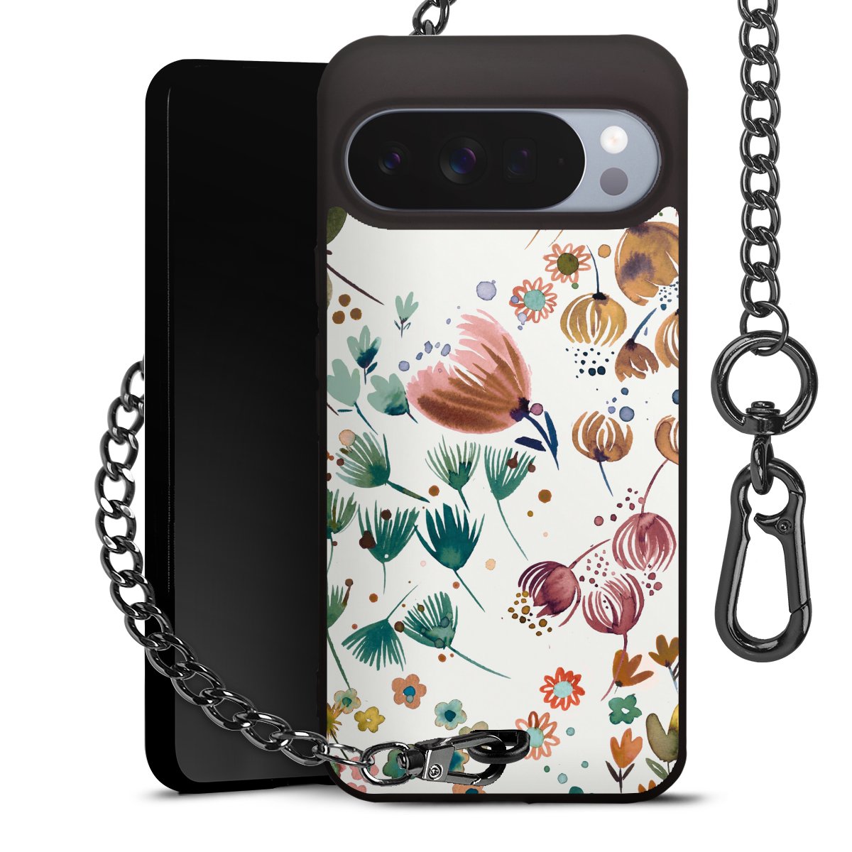 • Mattschwarze Handyhülle mit Metallkette