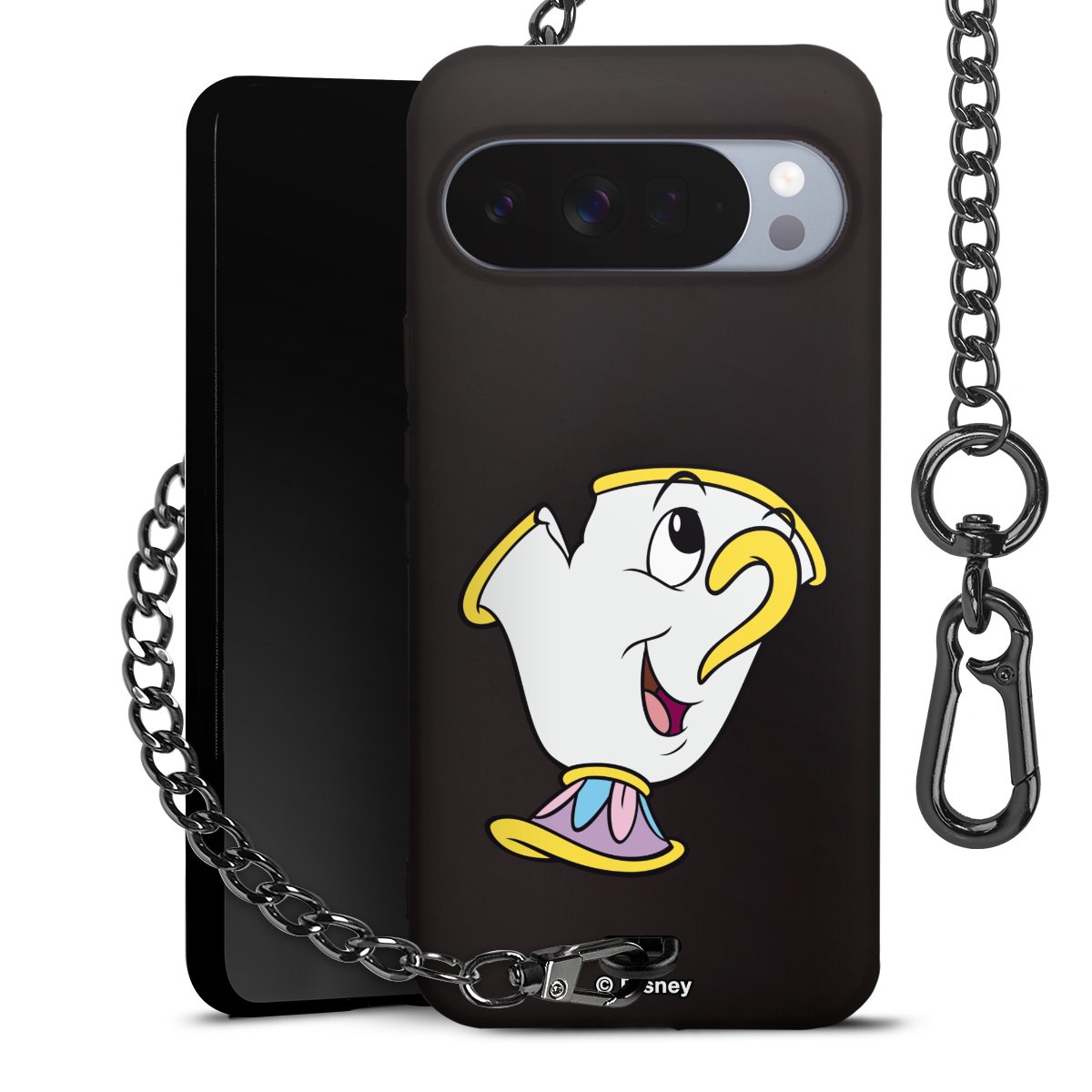 • Mattschwarze Handyhülle mit Metallkette