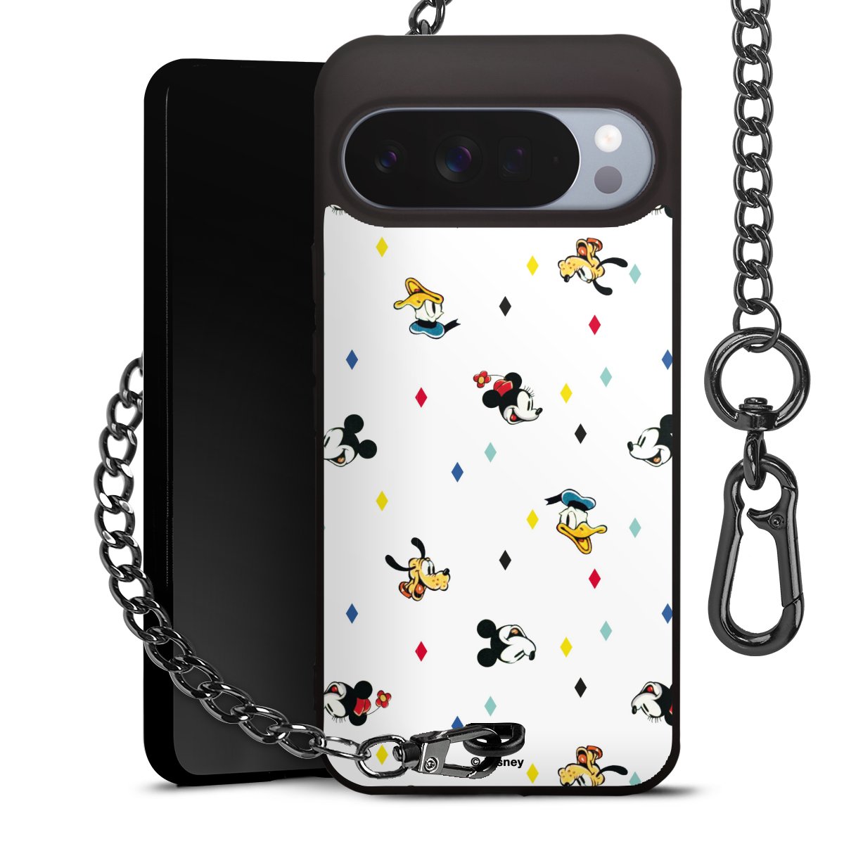 • Mattschwarze Handyhülle mit Metallkette