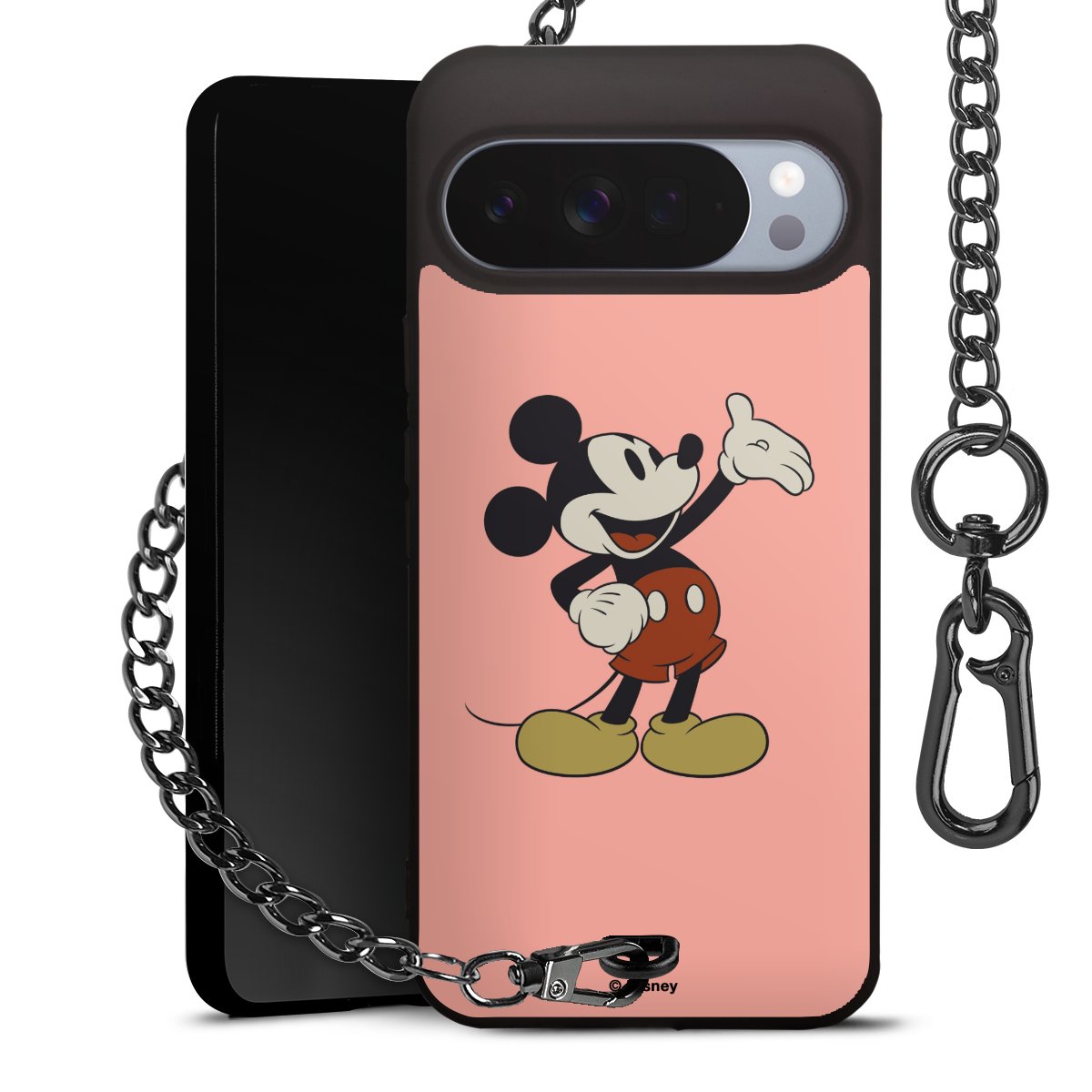 • Mattschwarze Handyhülle mit Metallkette