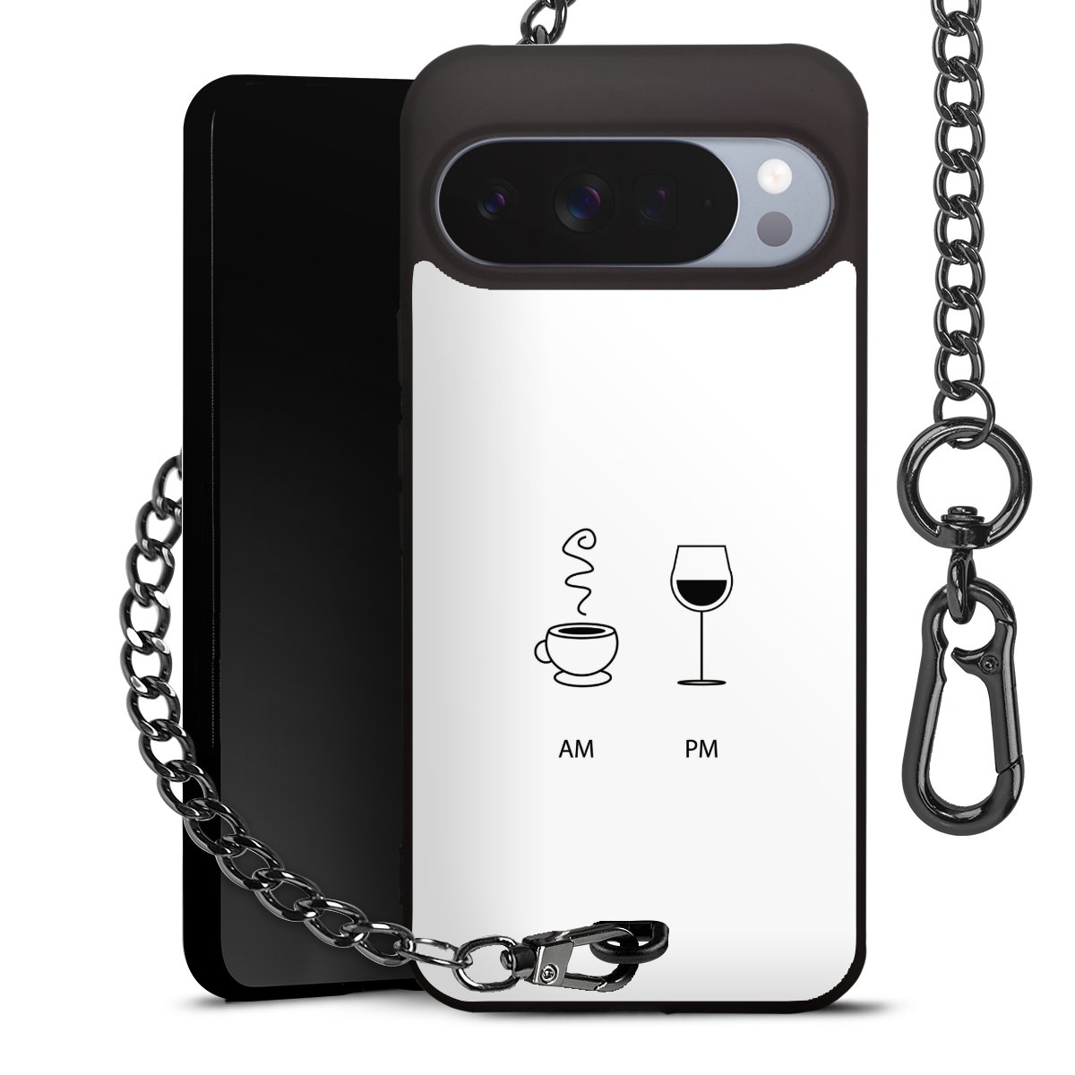 - Mattschwarze Handyhülle mit Metallkette