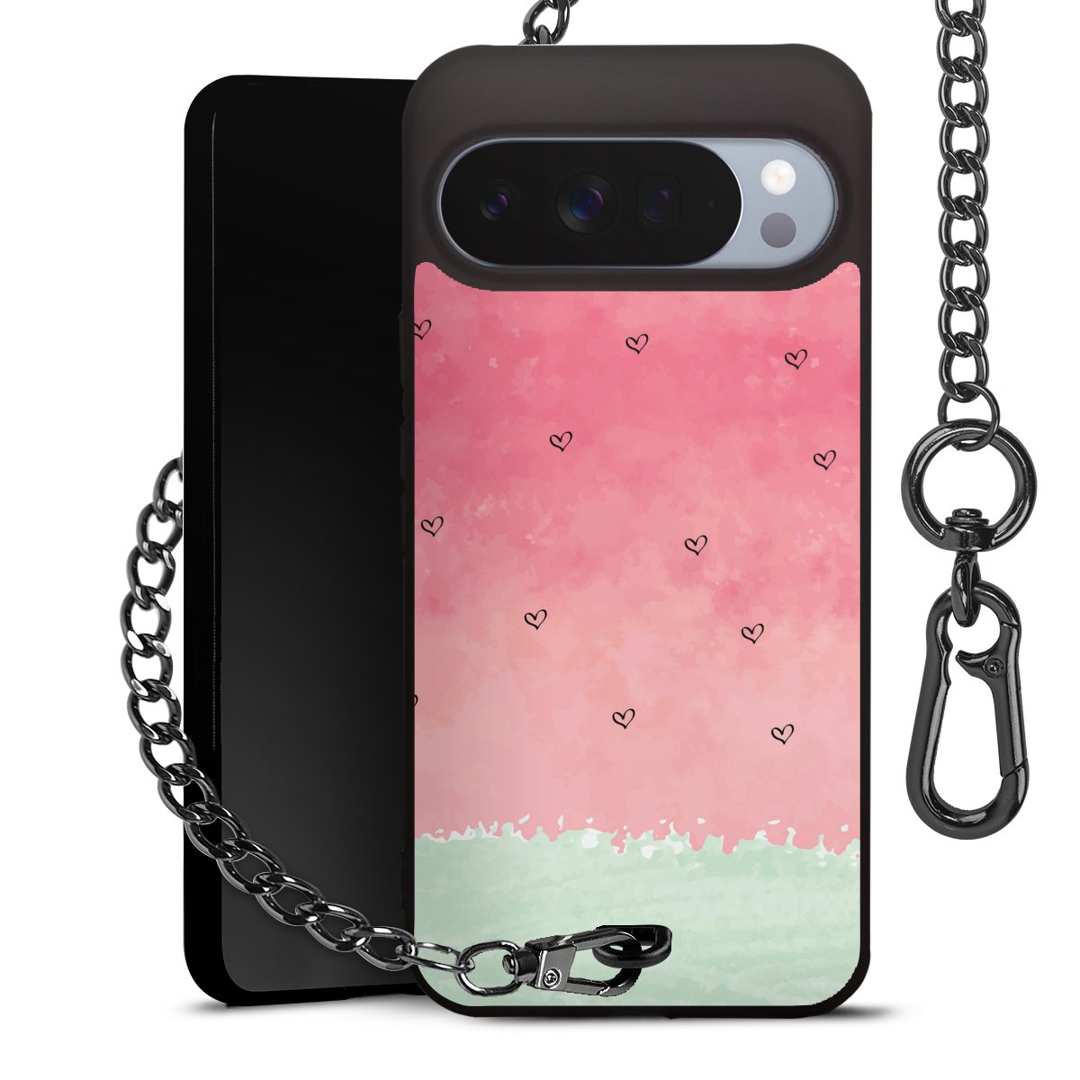 • Mattschwarze Handyhülle mit Metallkette